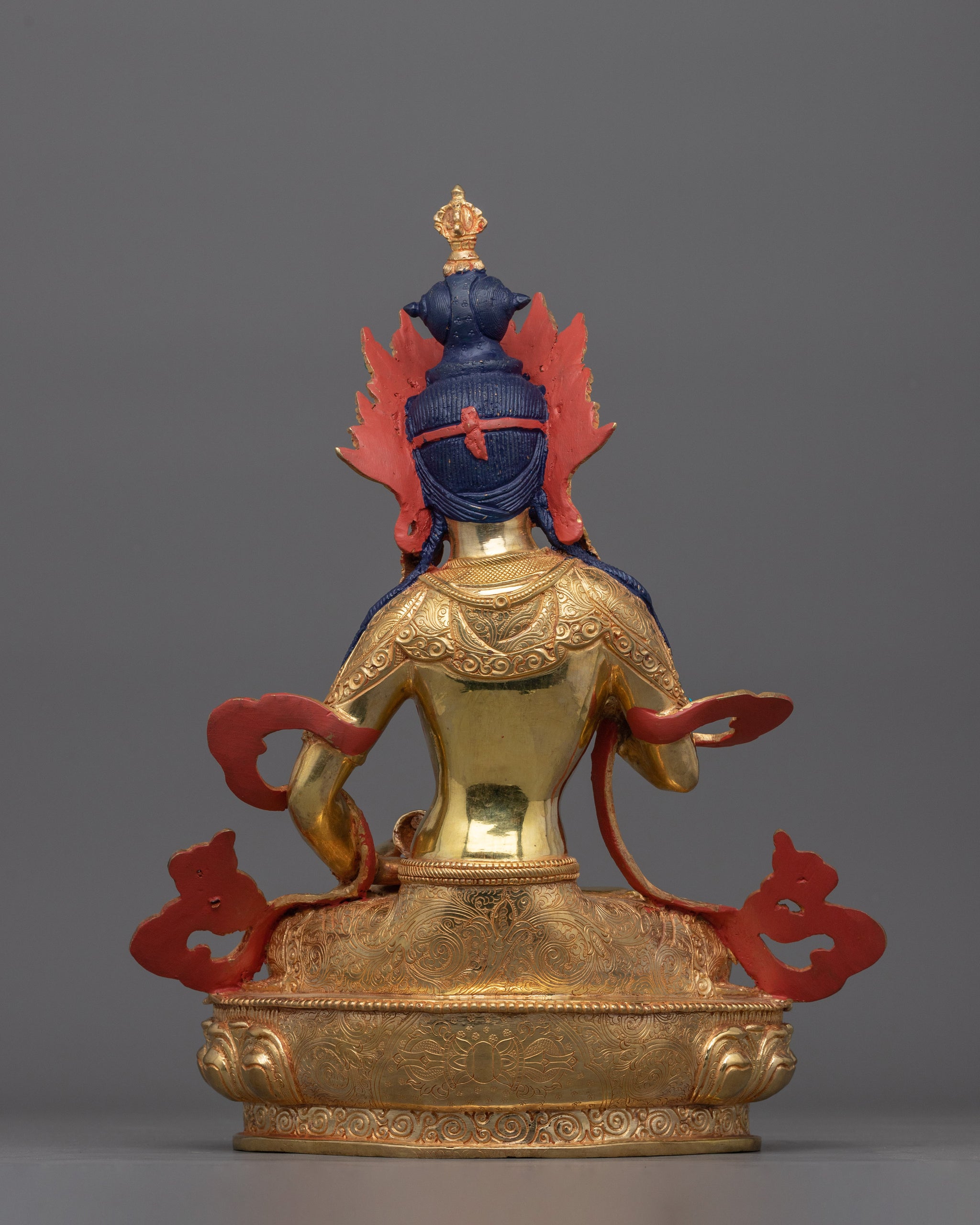 This handcrafted Vajrasattva meditation statue is the Buddha of Purification and Enlightenment. Vajrasattva is revered in Buddhist practice for his role in purifying negativity and helping practitioners to spiritual awakening. He embodies purity and the force of the diamond-like Vajra, which represents indestructible wisdom and compassion.