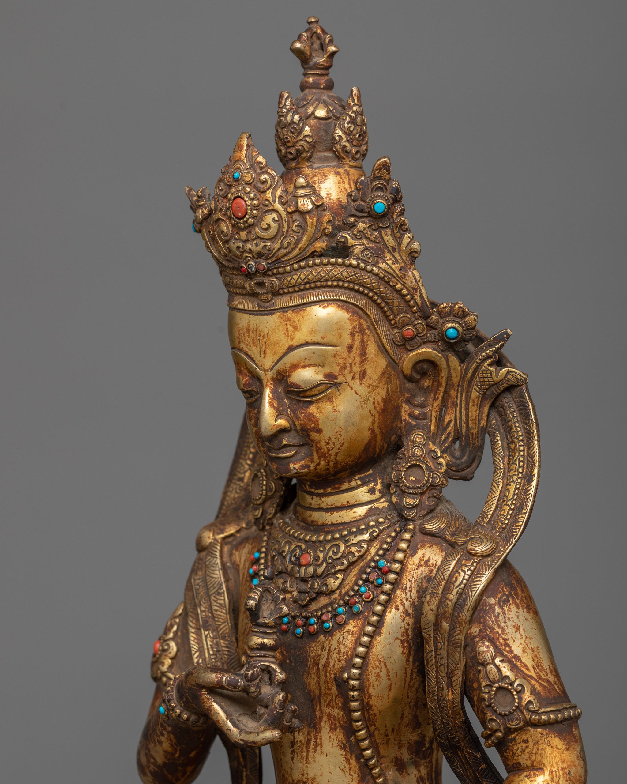 Vajrasattva Meditation Statue | 24K Gold Gilded Antique Finish