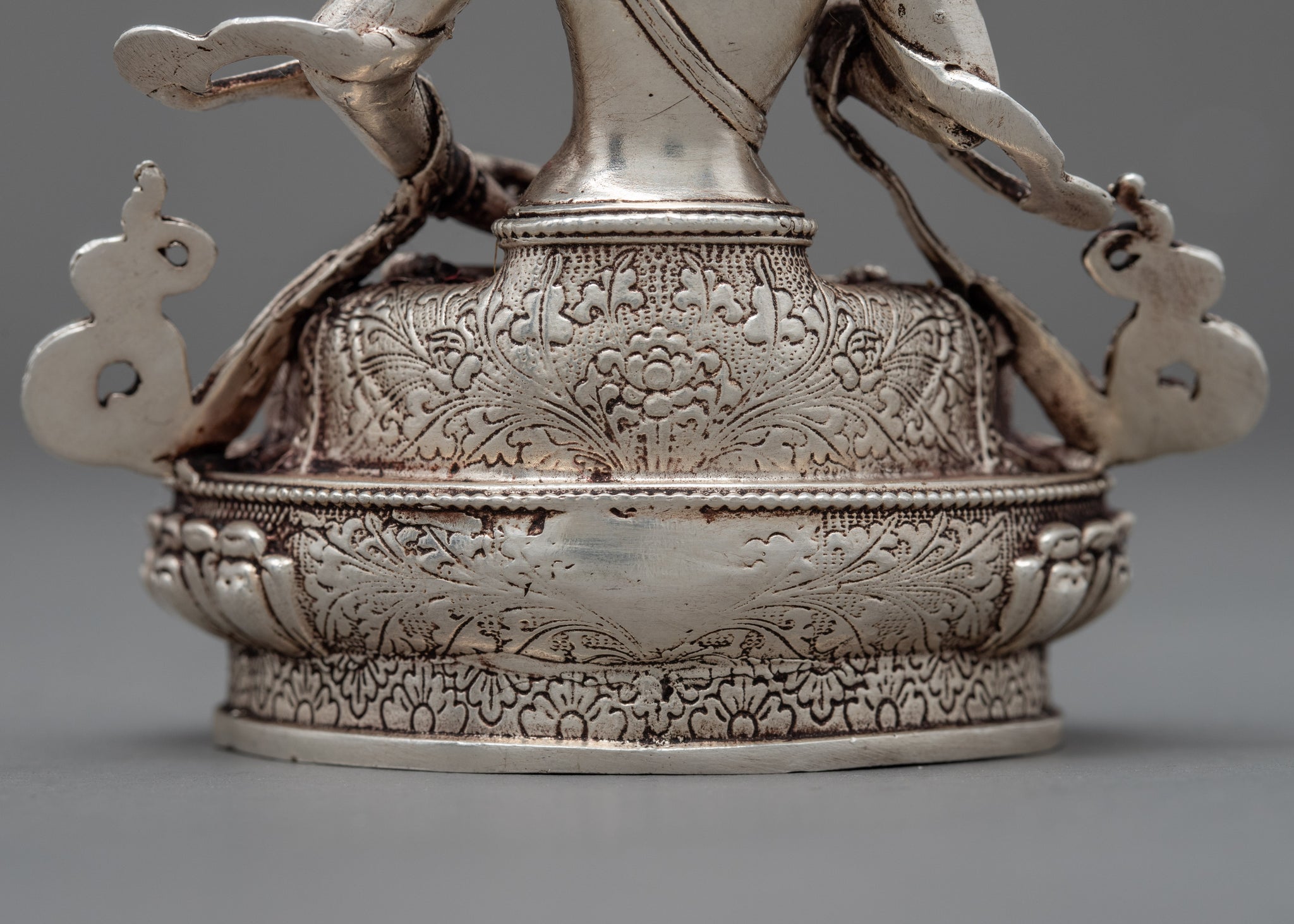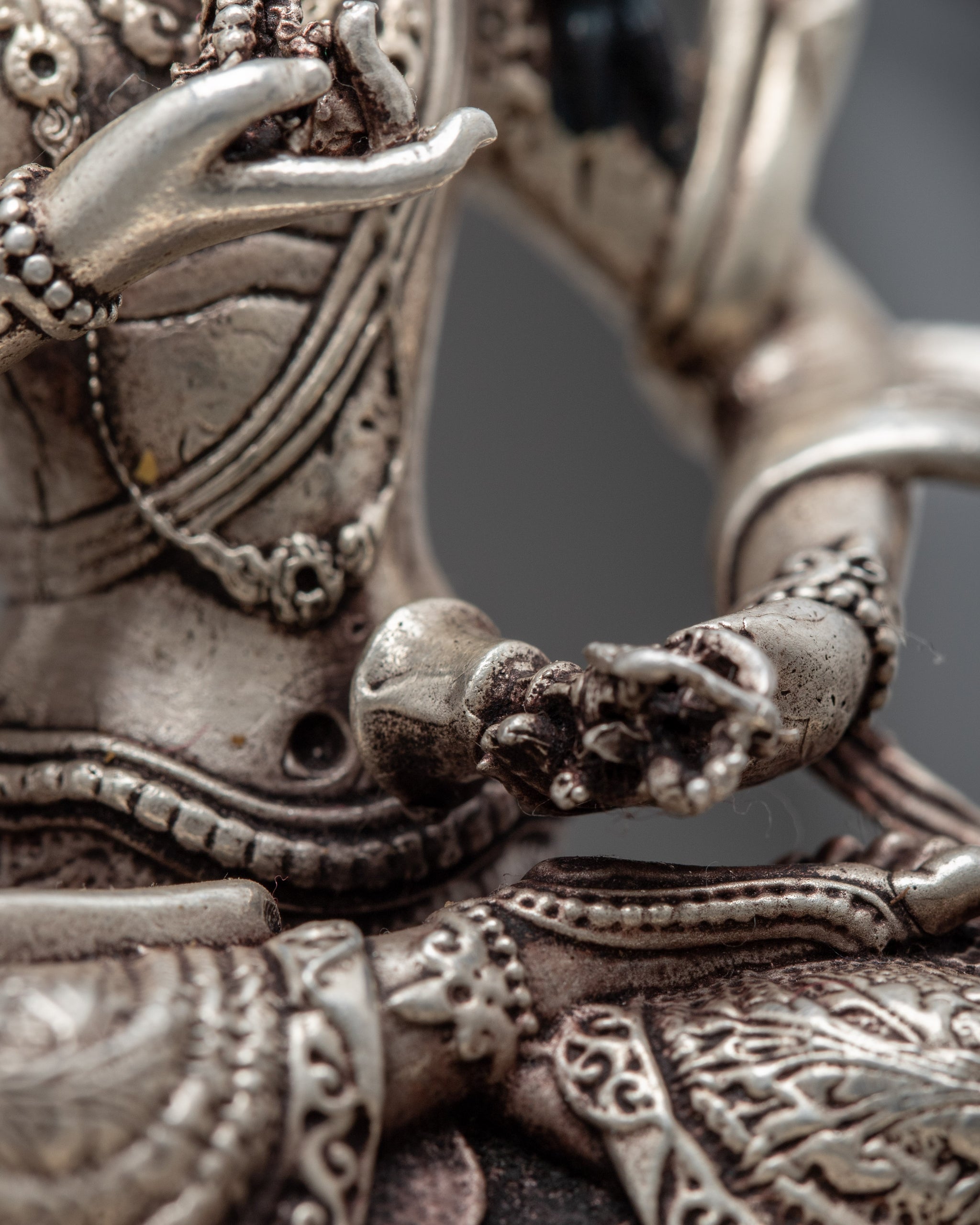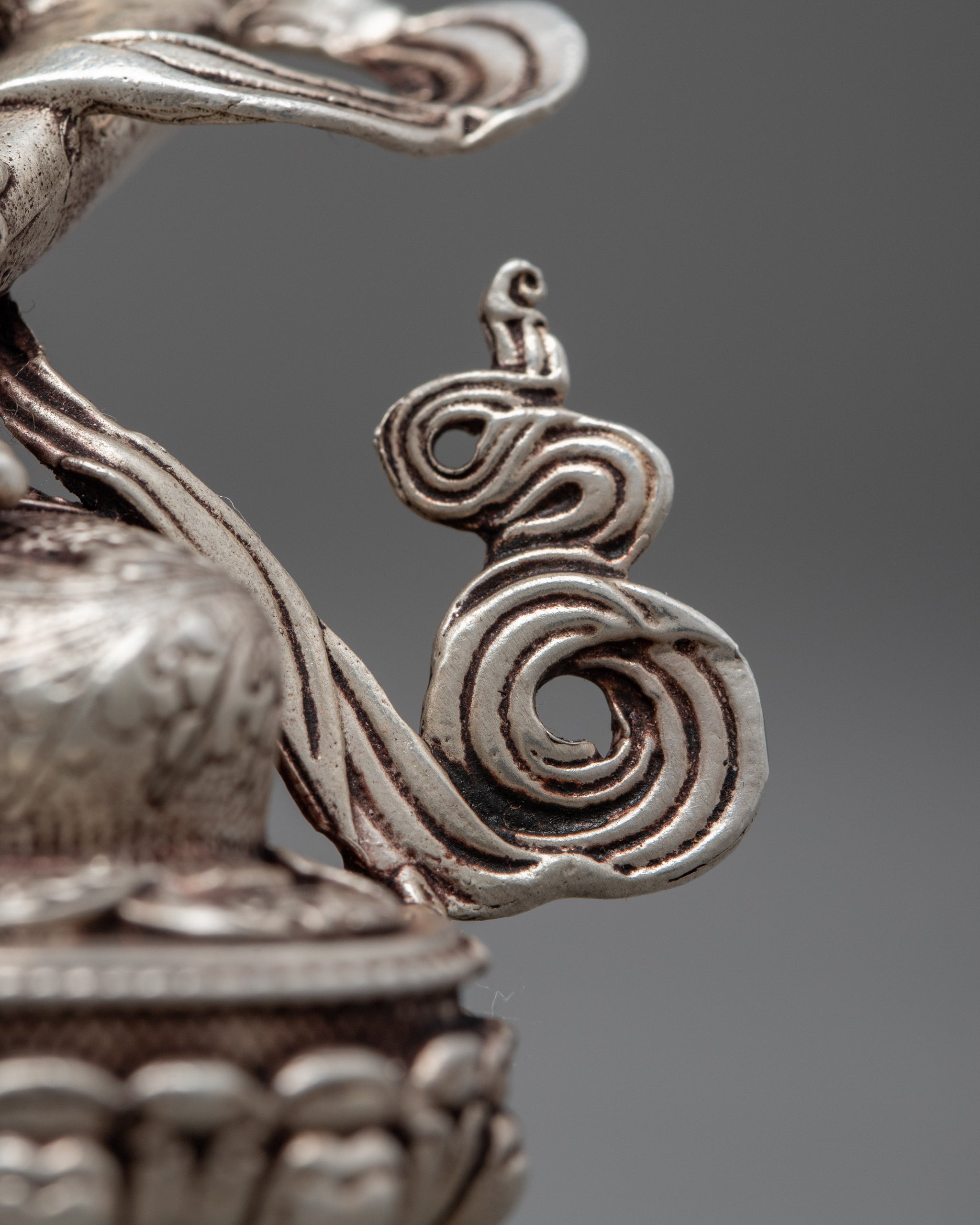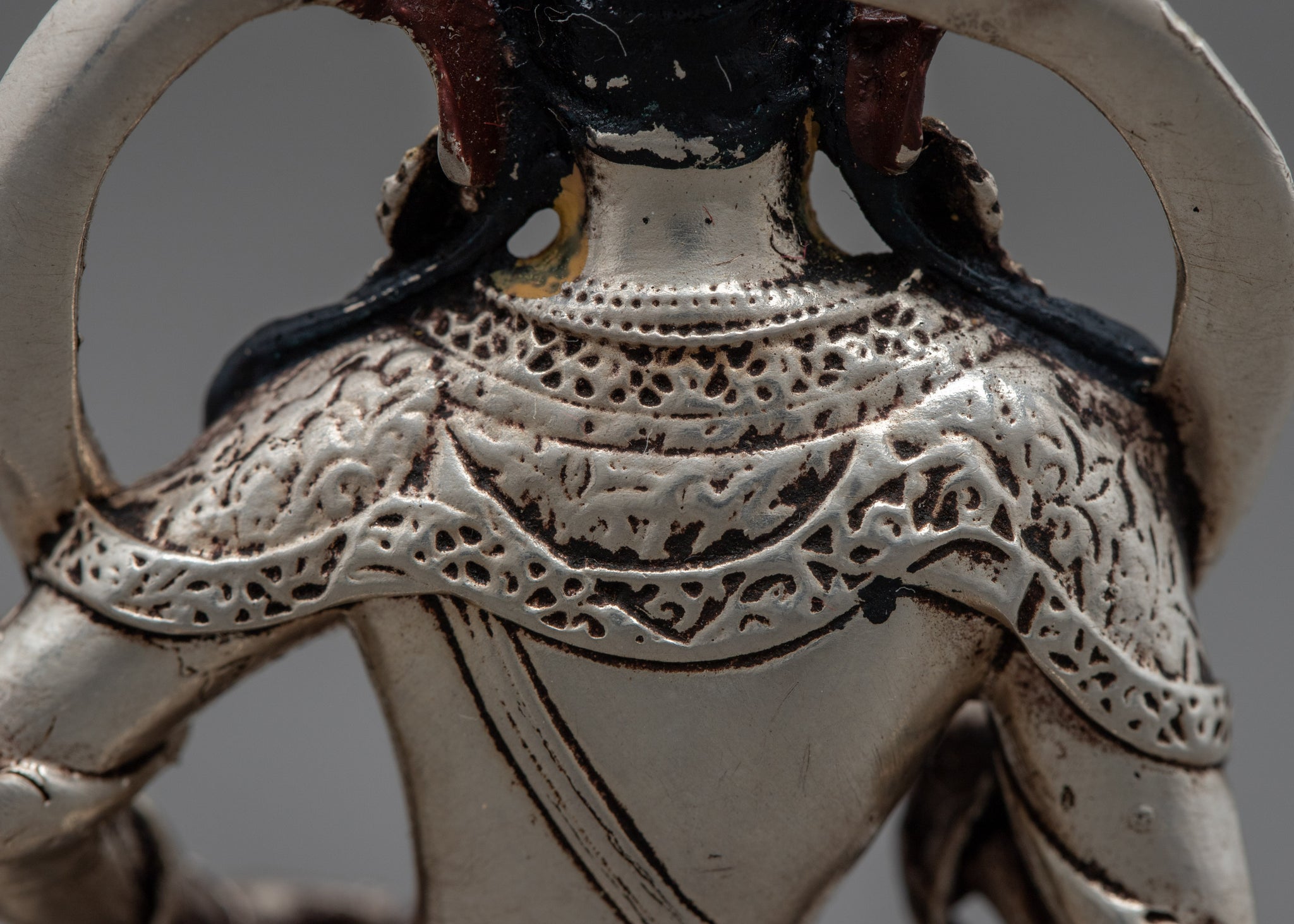 We have used the machine to carve the entire copper body of the mini Vajrasattva statue and plated it with silver. You can use this mini statue for various purposes like home decor and Buddhist occasions. We have depicted Dorje Sempa seated atop a moon disc lotus seat, holding a bell in his left hand, and he holds a vajra in his right hand. This art of Himalayan will be a tremendous indoor gift from Nepal to a practitioner like you.