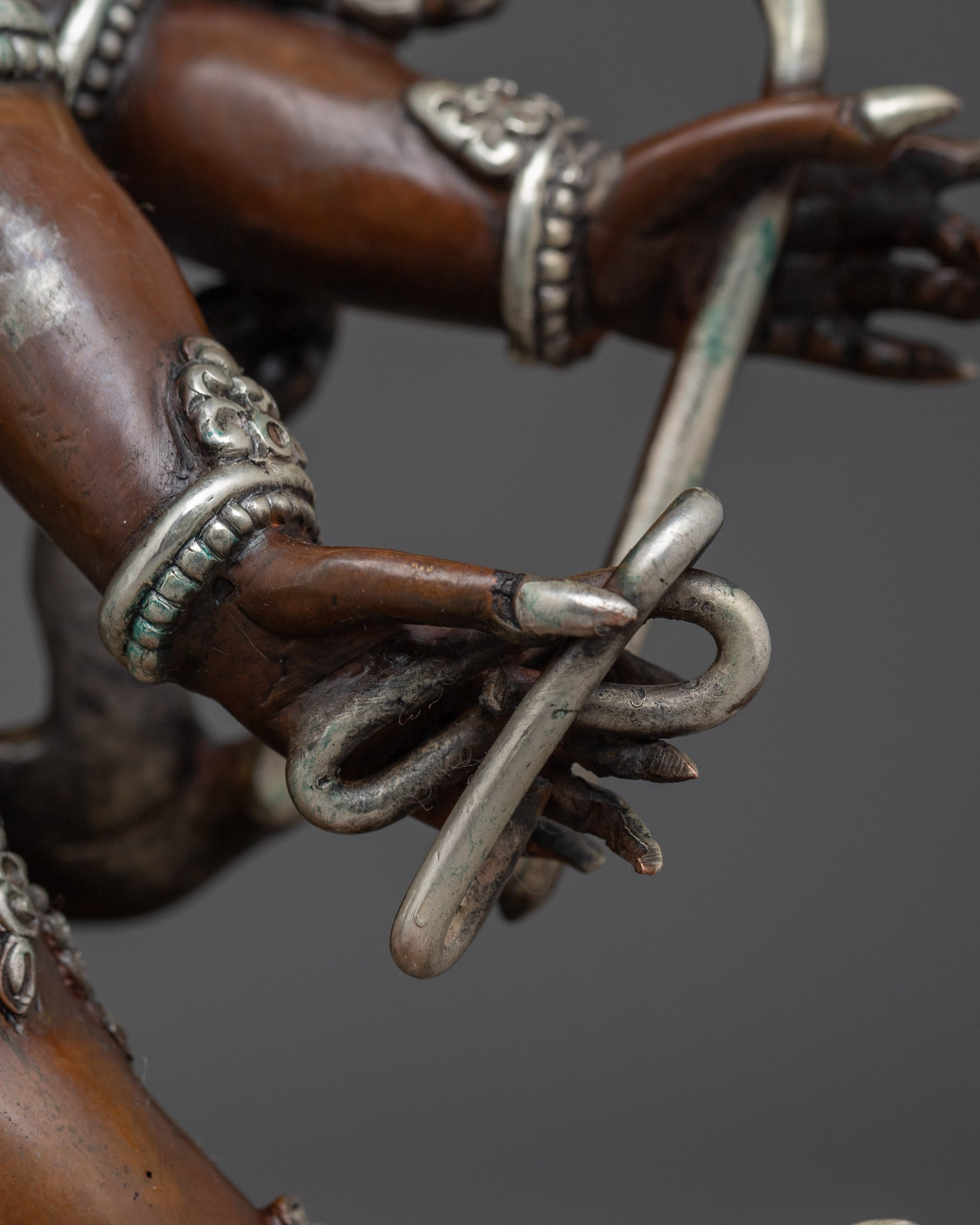 Vajrayogini is stunning. The details are amazing. It's easy to make out her facial expressions, skulls, feet, and the ring of fire around her. You can tell she's handmade. There is a consecration hole in her back.