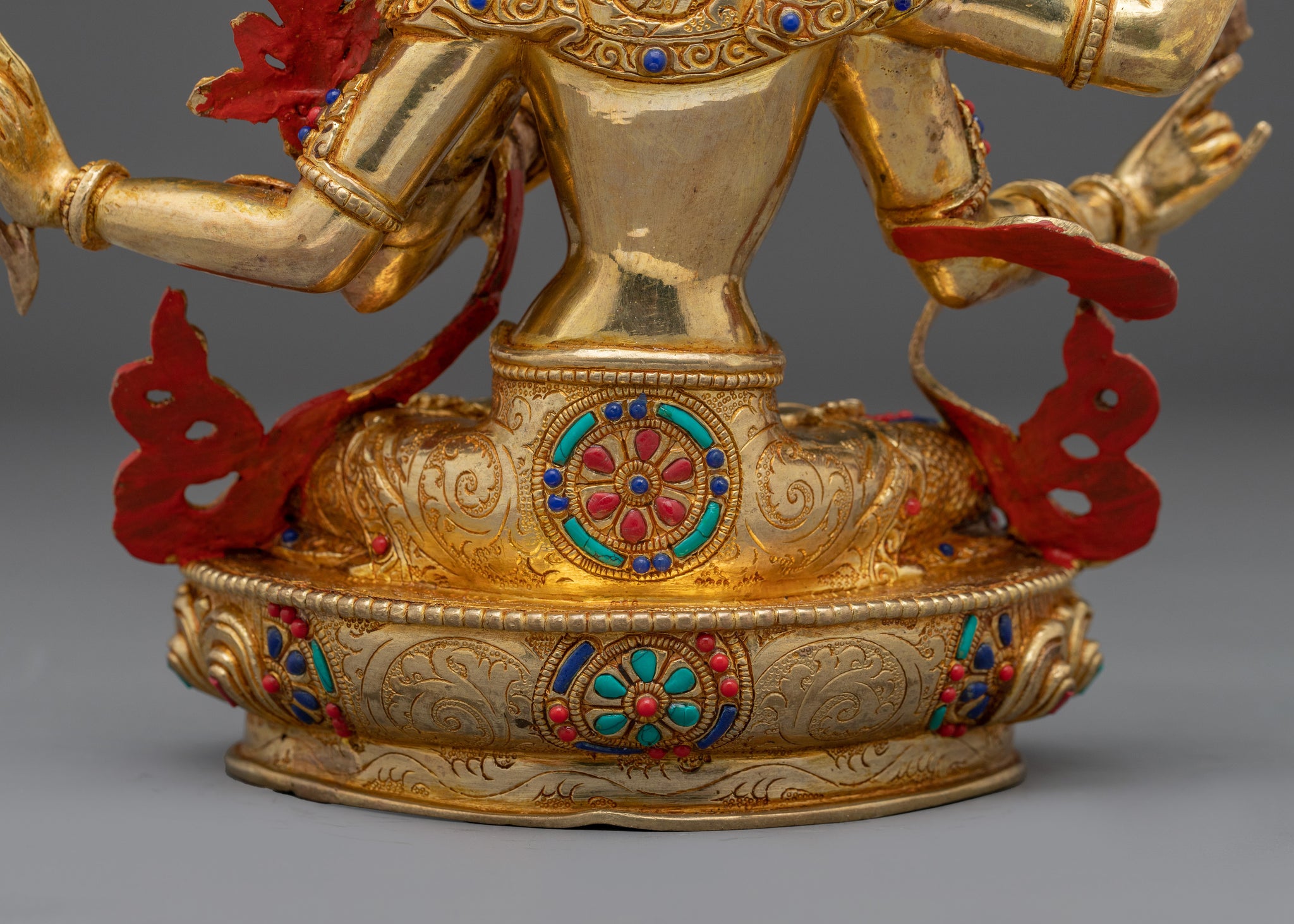 Vajrayogini is stunning. The details are amazing. It's easy to make out her facial expressions, skulls, feet, and the ring of fire around her. You can tell she's handmade. There is a consecration hole in her back.