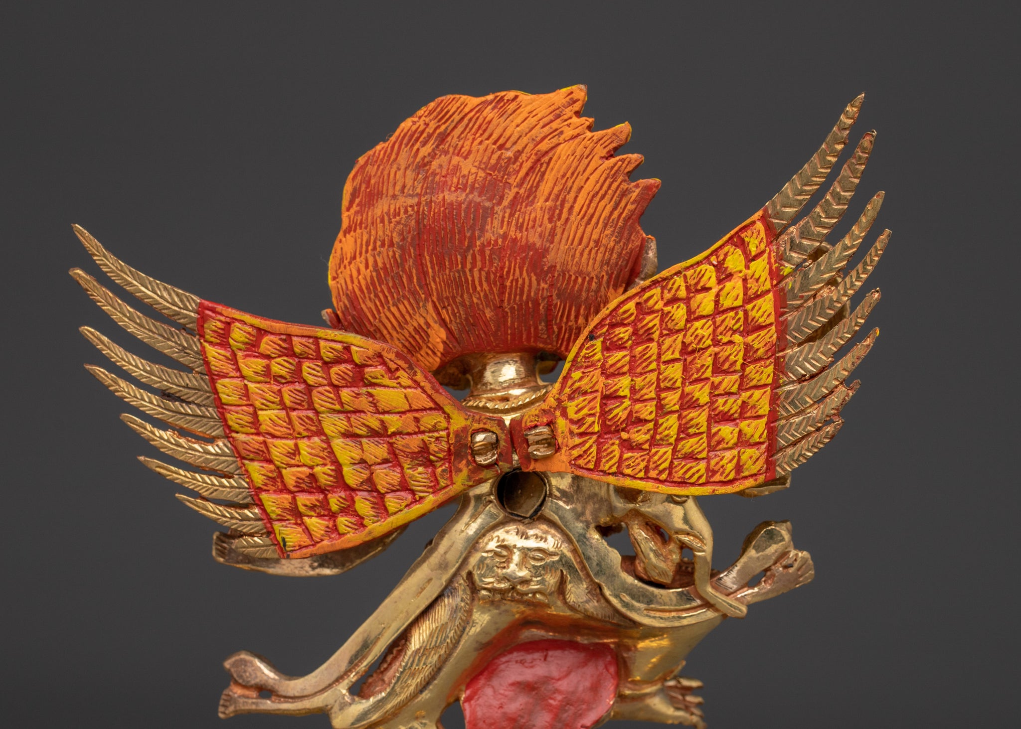 Vajrayogini is stunning. The details are amazing. It's easy to make out her facial expressions, skulls, feet, and the ring of fire around her. You can tell she's handmade. There is a consecration hole in her back.