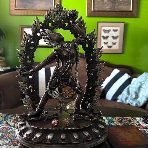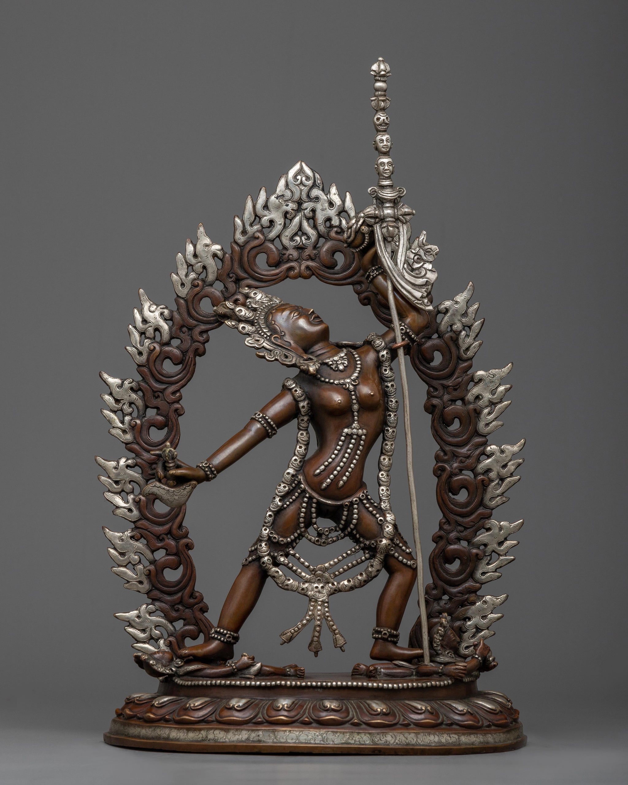 This statue, weighing 2.95 kg, is both stable and durable, making it a long-lasting piece of decor. The statue's rich workmanship and symbolism embody the essence of Vajrayogini, Buddhism's tantric deity of passion and transformation. This statue is not just a piece of decor but a symbol of divine passion, spiritual transformation, and enlightenment.
