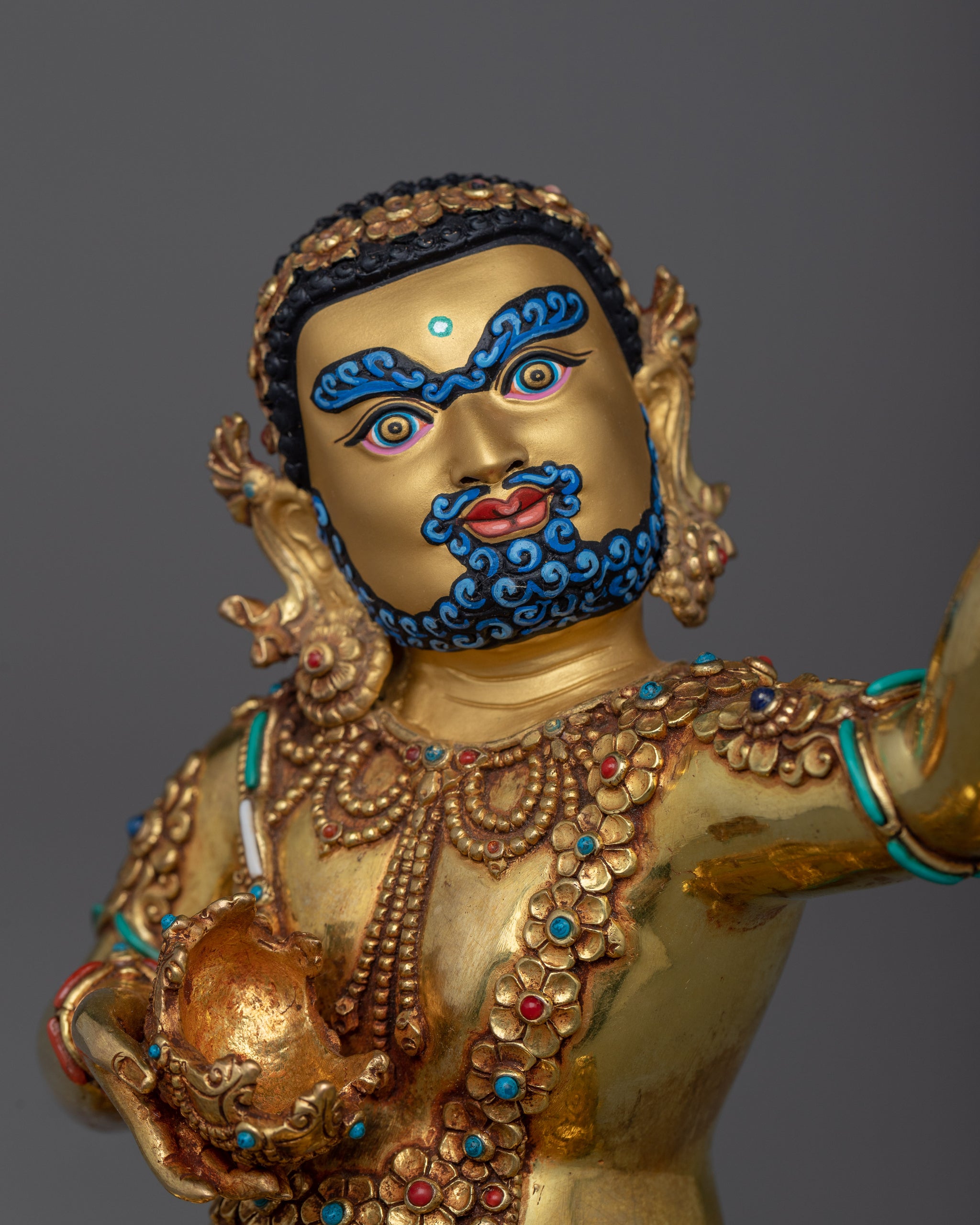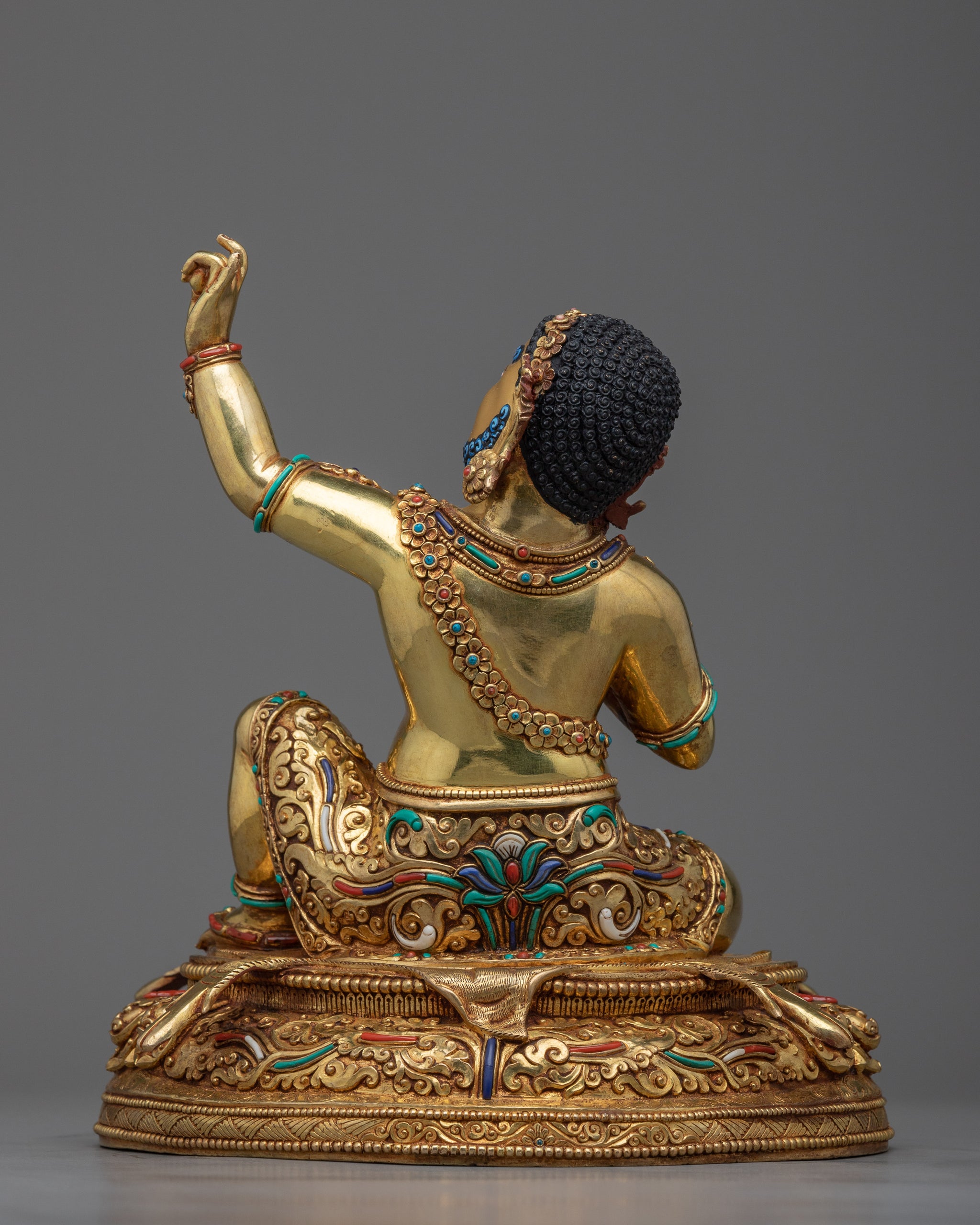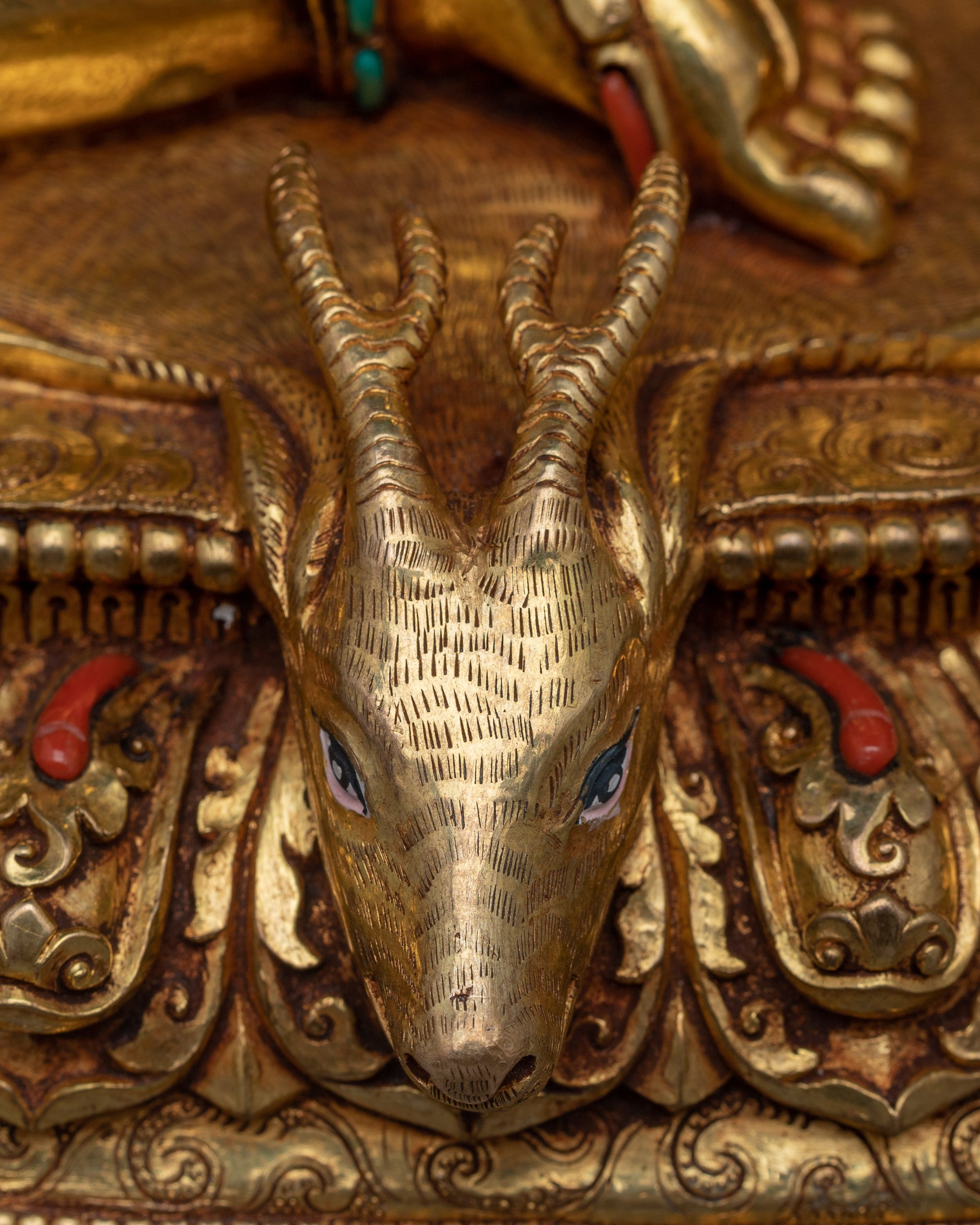 Craftsmanship is passed down to us from generations of Master artisans. We sculpted this beautiful statue of Virupa, The Lord of All Yogis. The Statue is made of a copper body and then gilded in genuine triple-layered 24k gold. The statue has a 3D effect, multilayered carving and adorned with high quality carved precious stone.