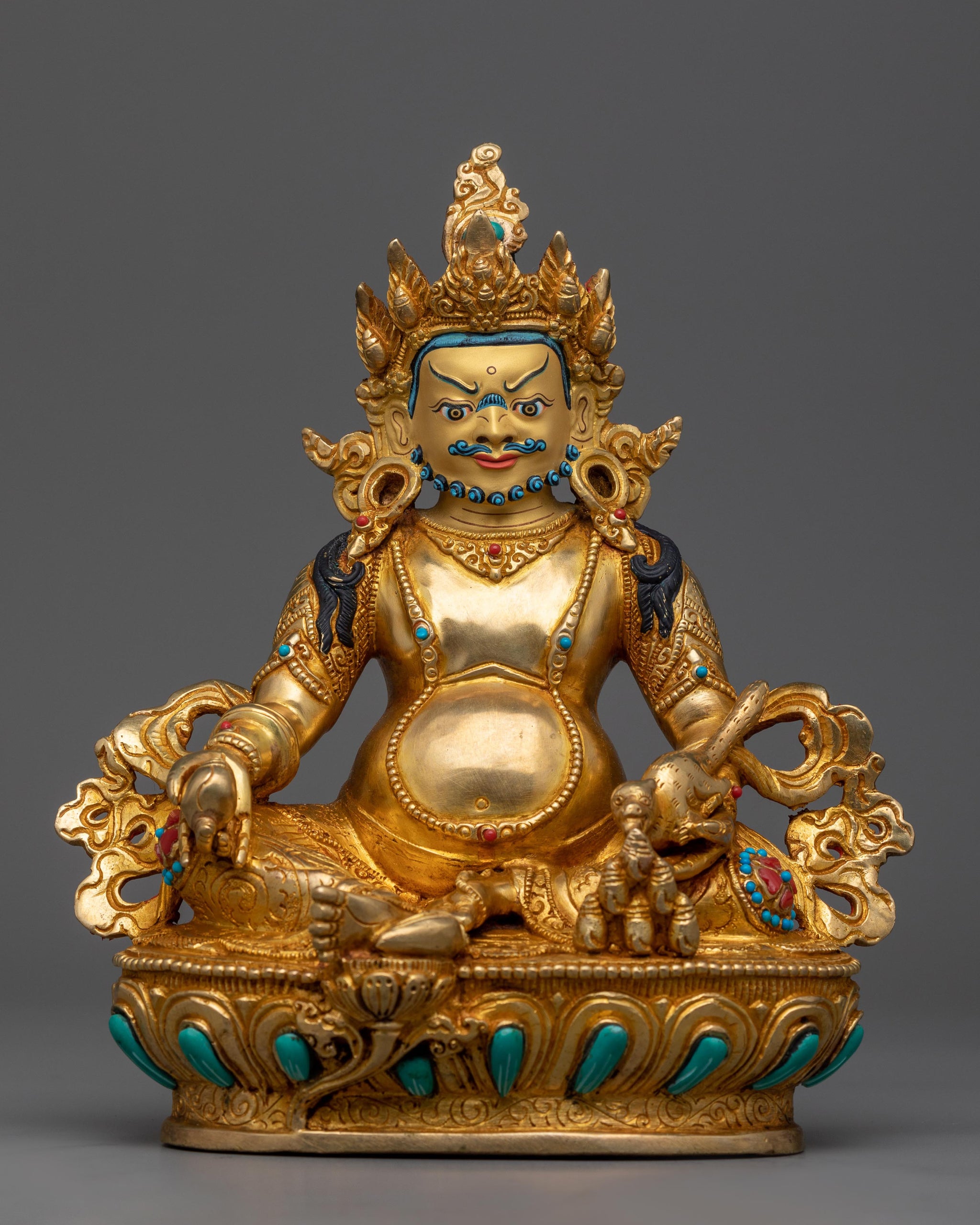 With our magnificent Wealth Dzambhala statue, open the doors of wealth and success. This masterpiece, created with deft artistry, exudes the benefits of Dzambhala, the god of wealth, and is embellished with 24k gold gilding, gold and acrylic paintings, and a copper body.