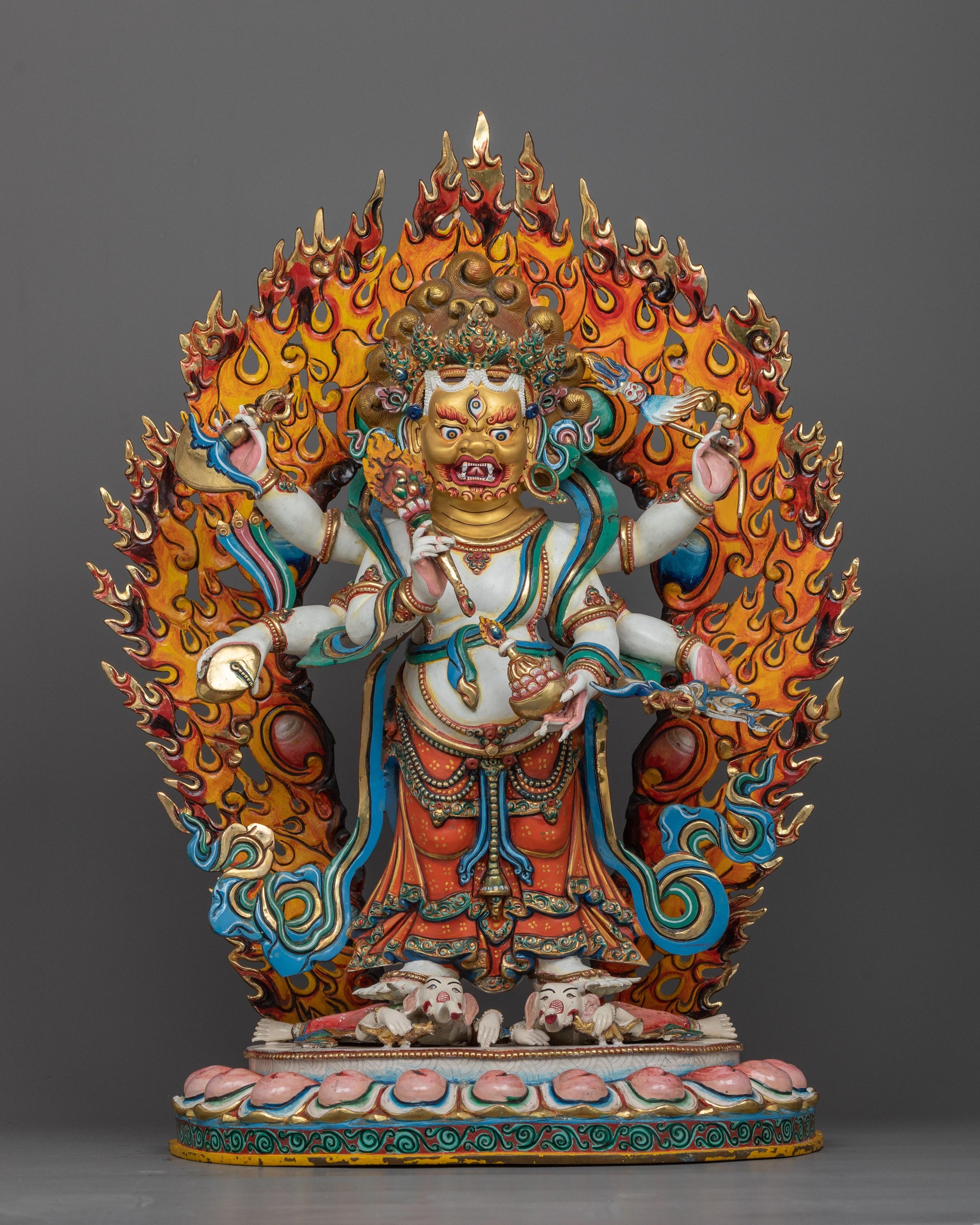 White Six-Armed Mahakala Statue in 24K Gold | A Potent Protector in Vajrayana Buddhism