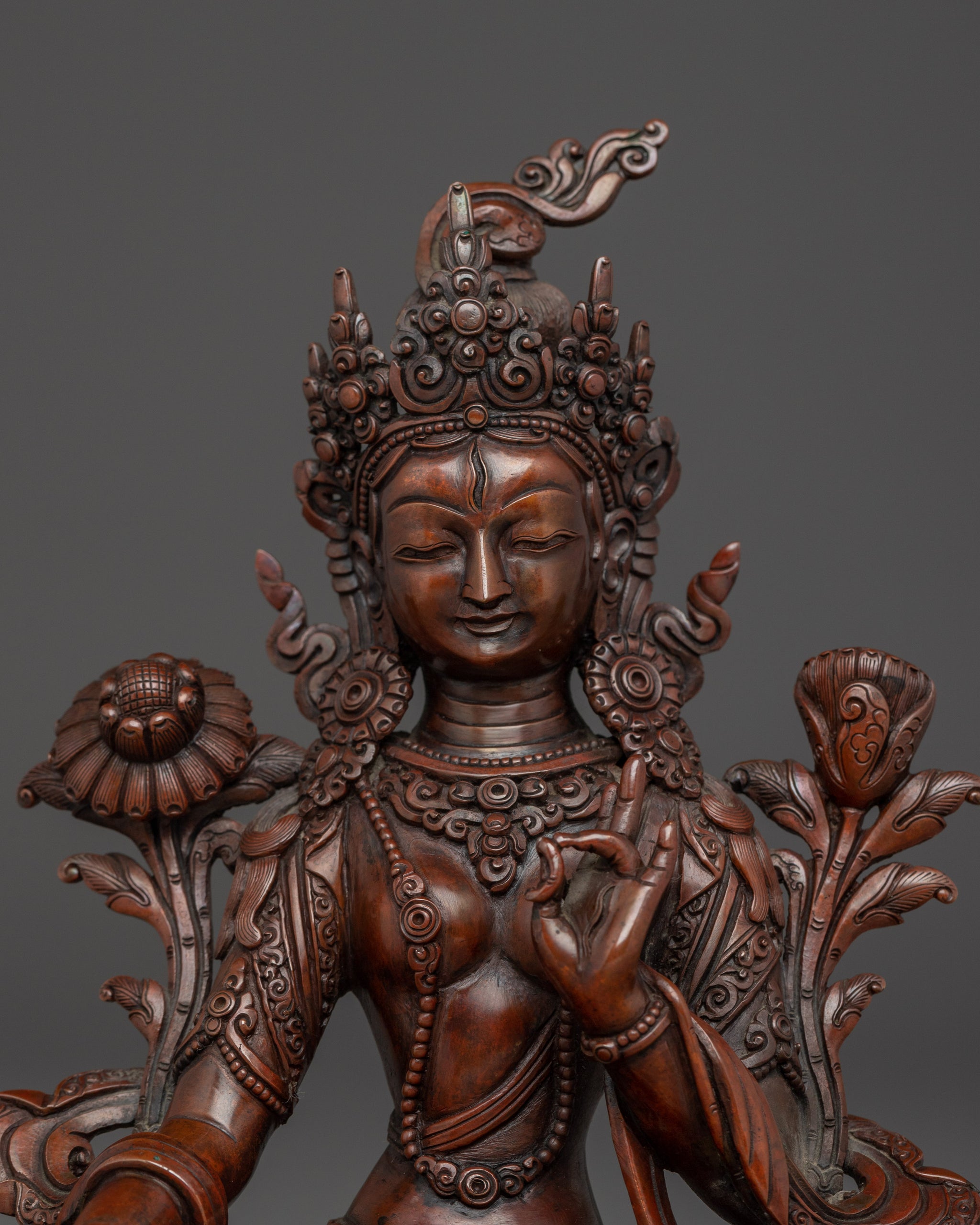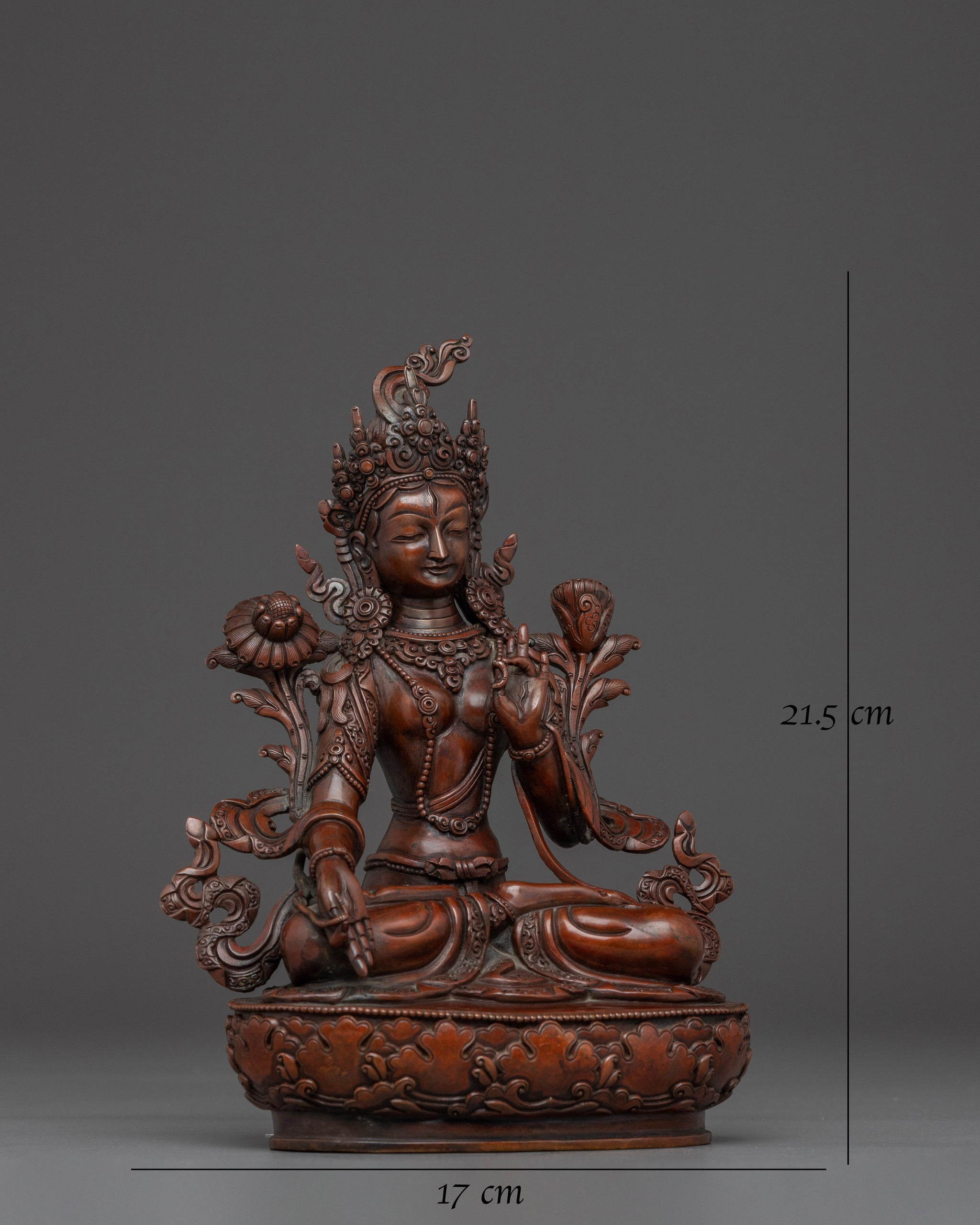 Size: 8.5”/21.5cm (Height) x 6.7”/17cm (Base)Weight: 1.48 kgMaterial: Oxidized Copper Body