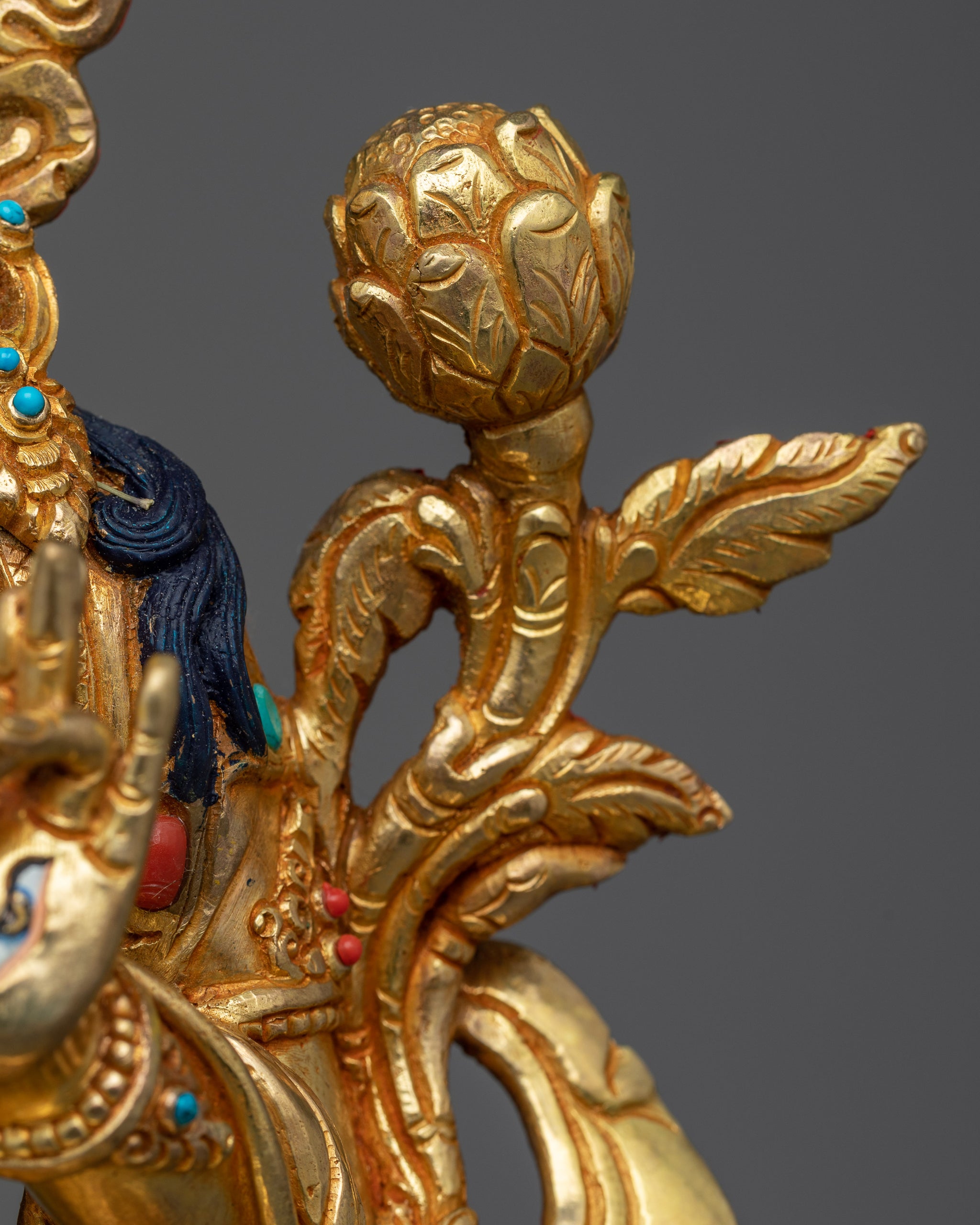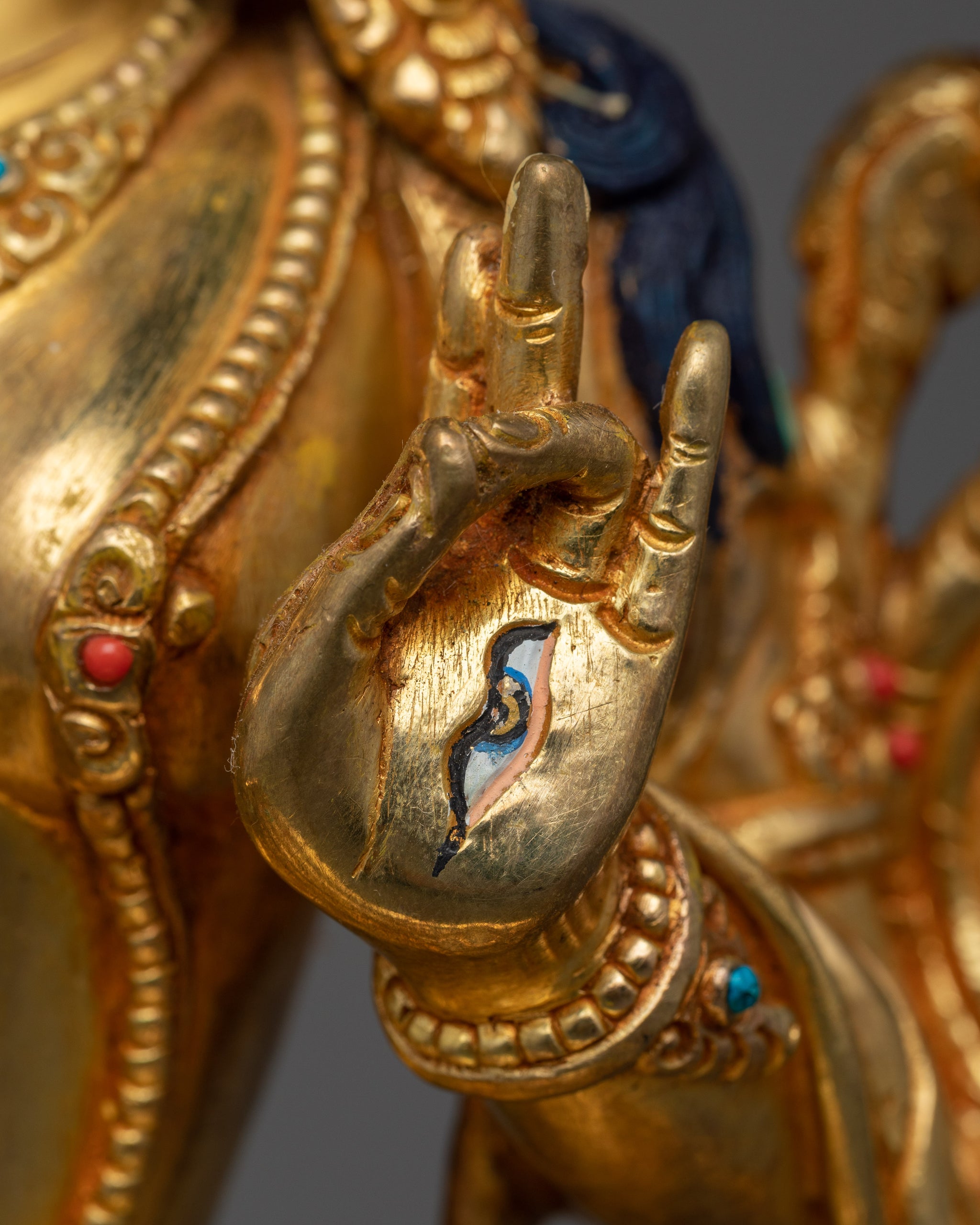 Material: 24k Gold Gilded, 24k Gold & Acrylic Paintings, Hand Carved Gemstone, Copper Body