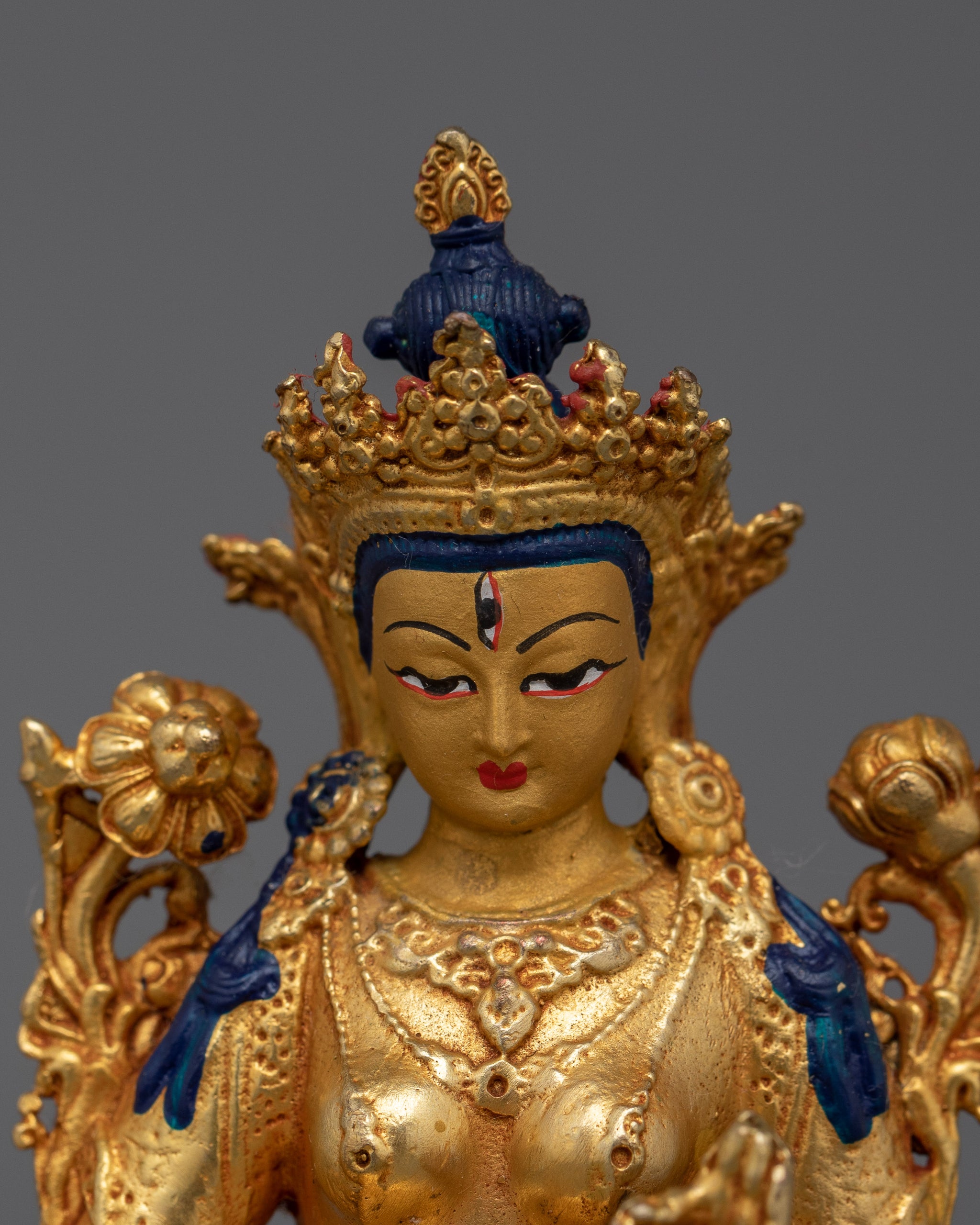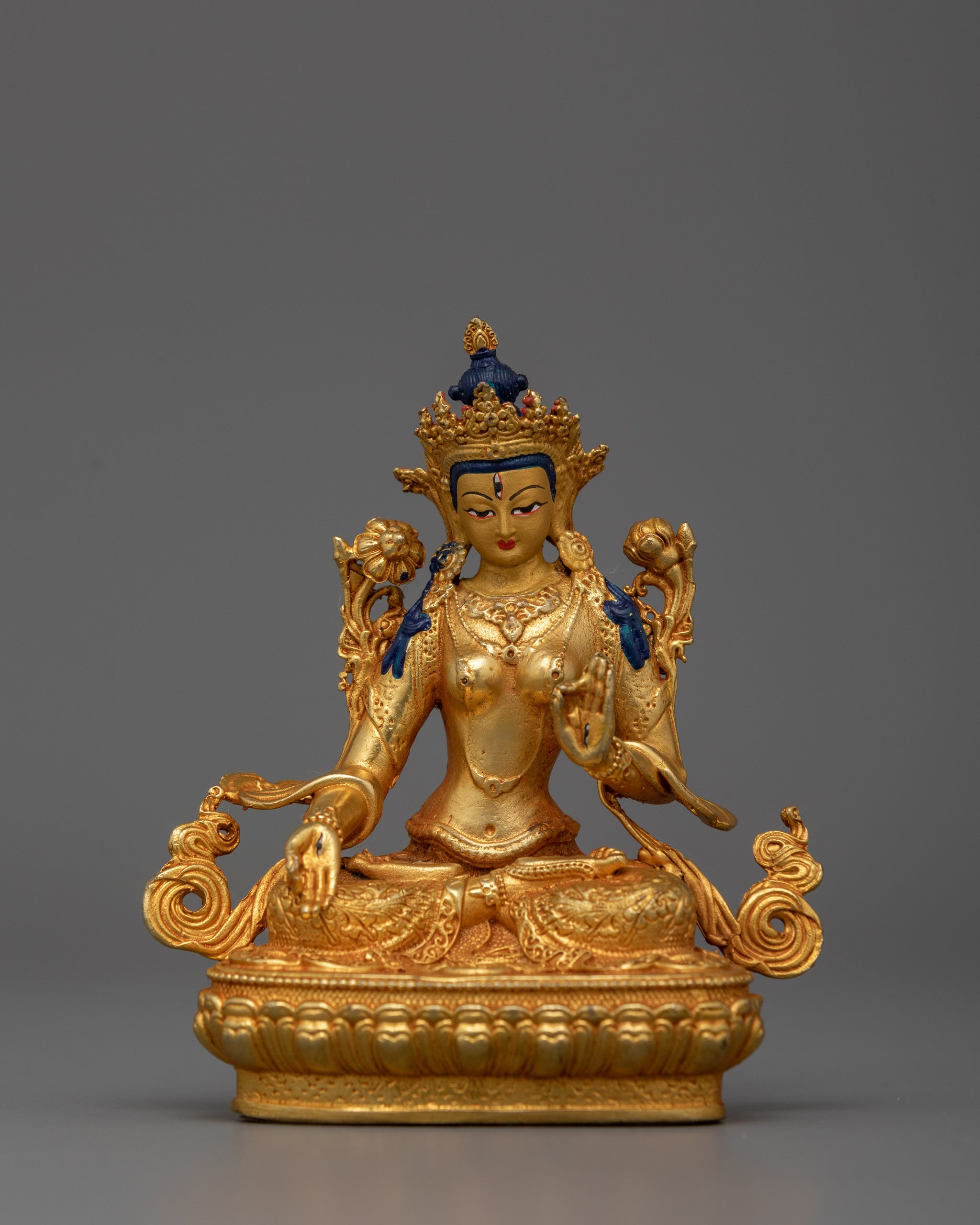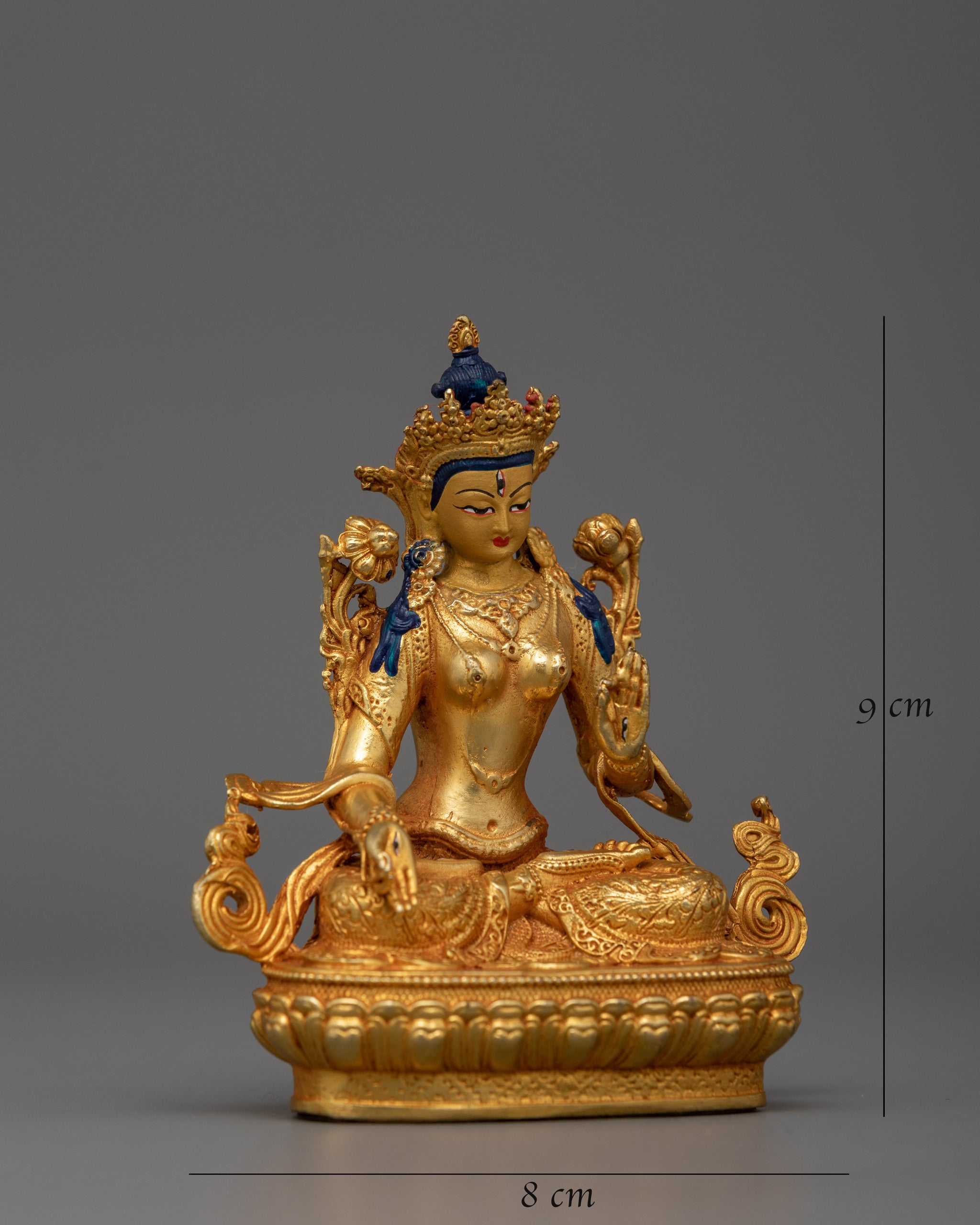 White Tara Dharma Statue | Miniature Gold Electroplated Tibetan Goddess Statue