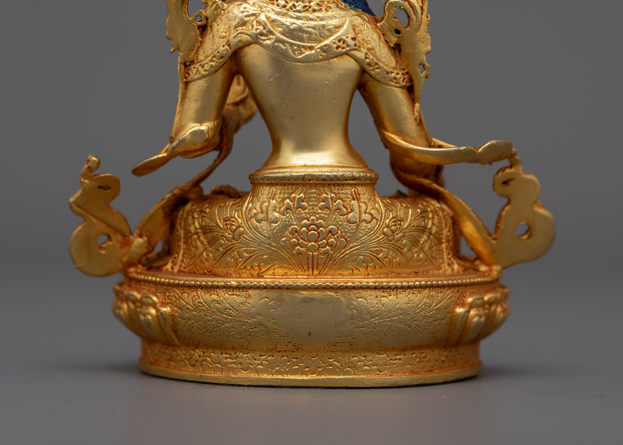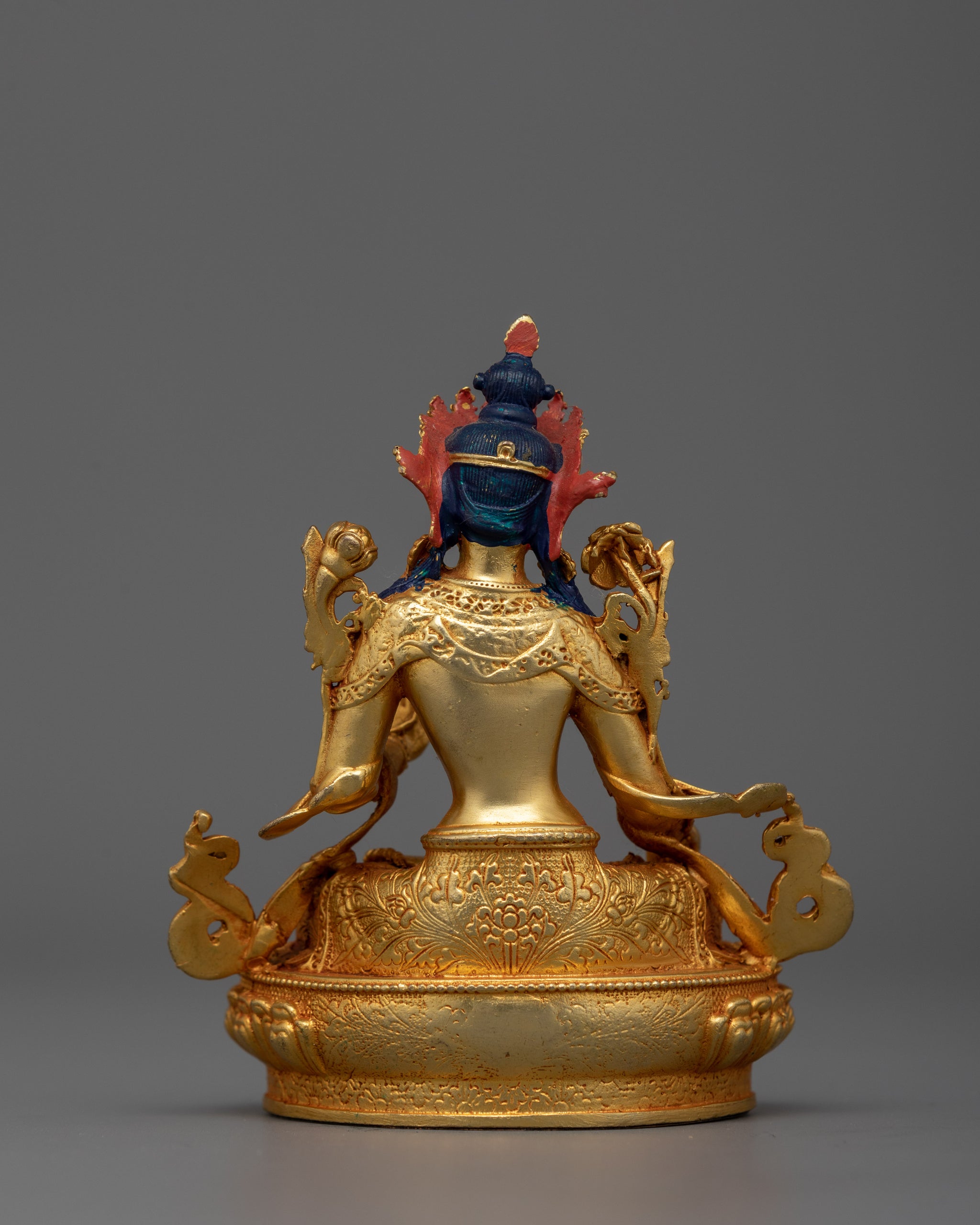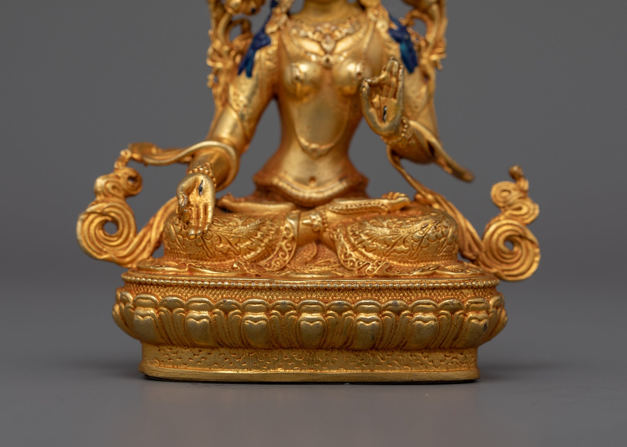 White Tara Dharma Statue | Miniature Gold Electroplated Tibetan Goddess Statue