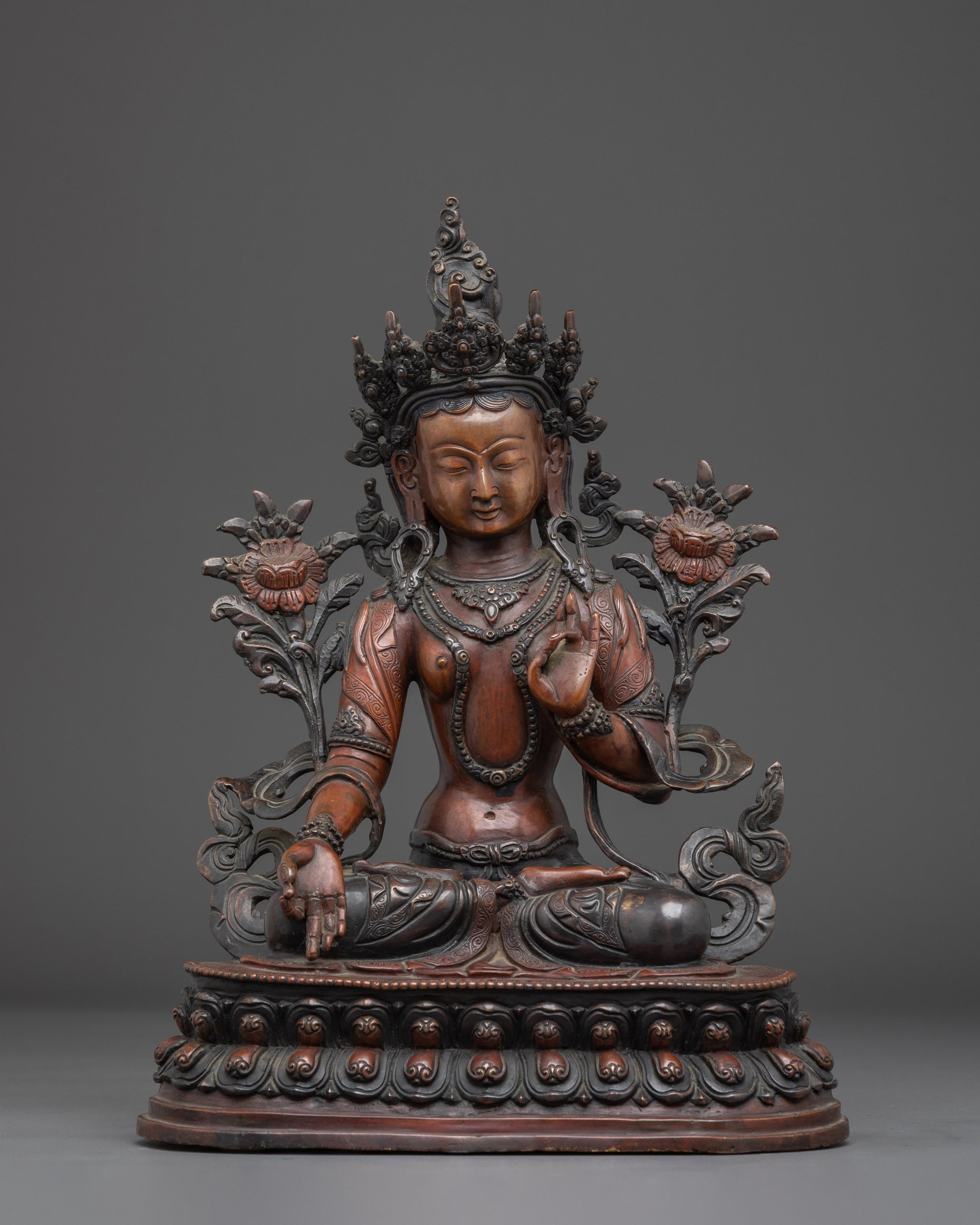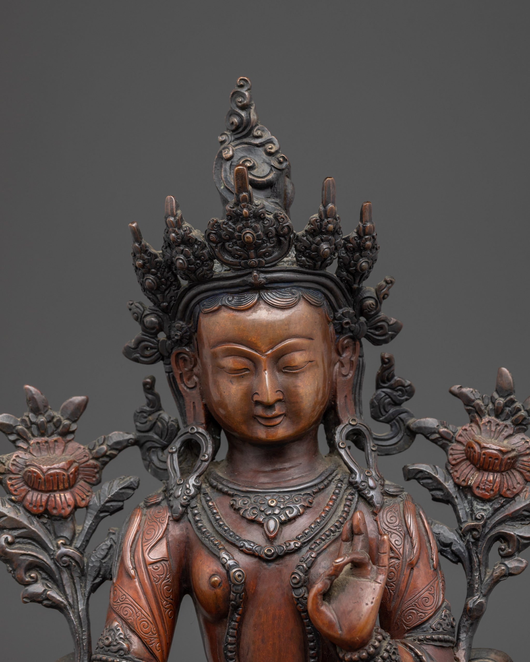 White Tara in Oxidized Copper | Sculpture of the Healing Mother Deity