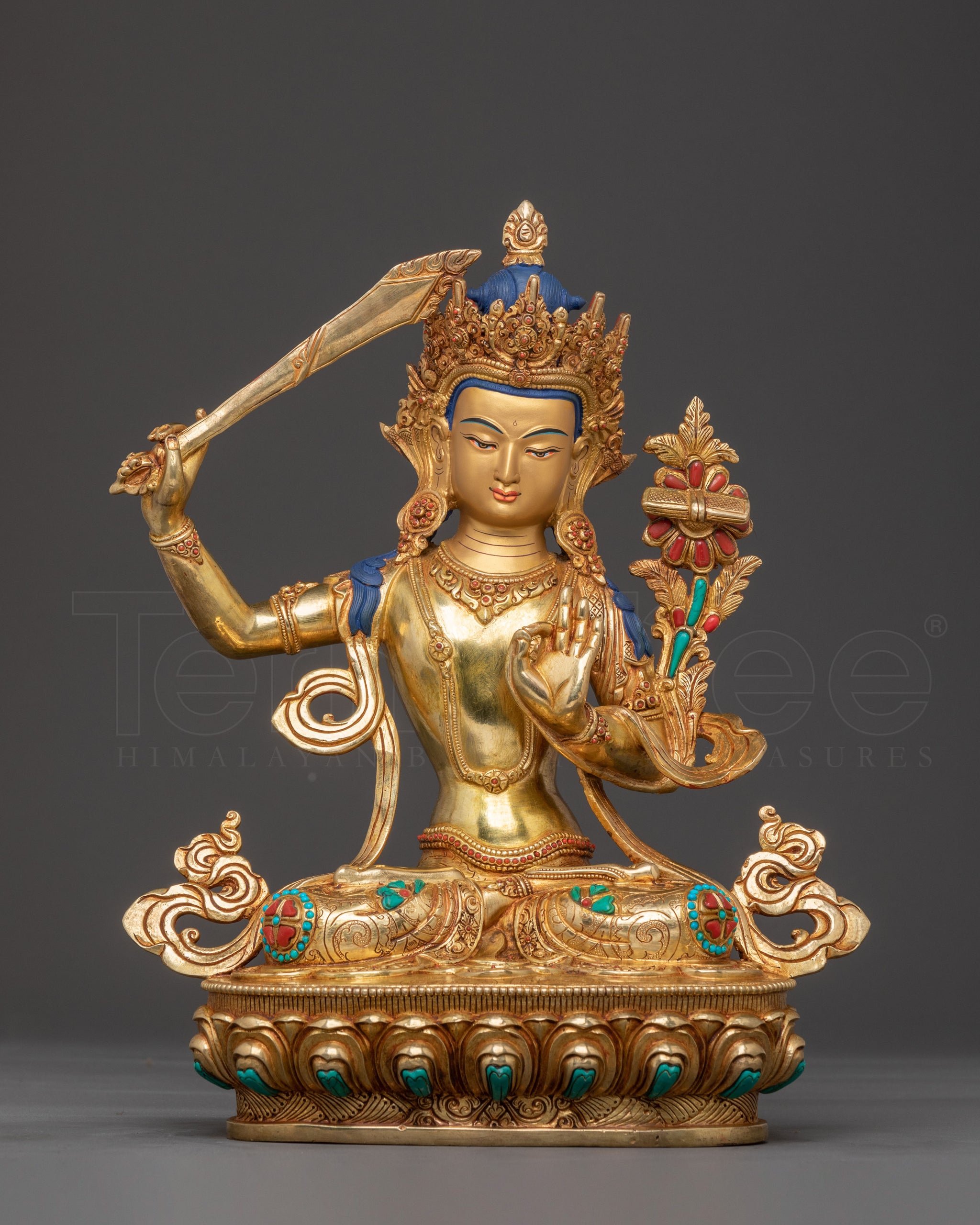 Exquisite Wisdom and Intellect Bodhisattva Manjushri Statue – Crystal & 24K Gold Statue