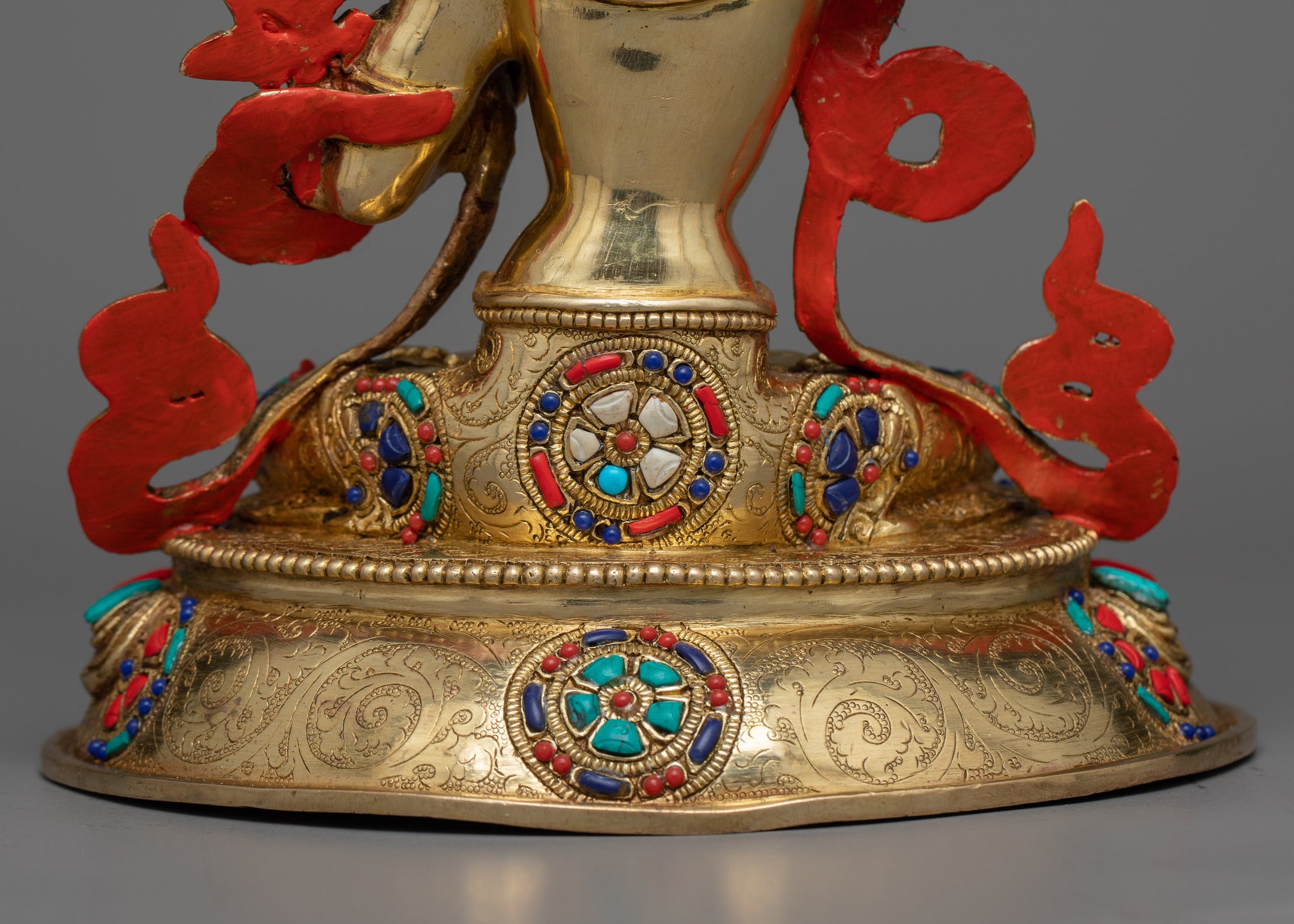The statue is very beautiful. The craftsman who crafted it clearly shows the care and heart he put into it. It is a true dharma jewel on the altar. Shipping was quick, considering the recent events in Nepal. It was carefully packed and filled in a wooden box. If you're buying for shipping to the European Union, please note that customs duties on items from outside the EU are as high as 23 percent of the value.