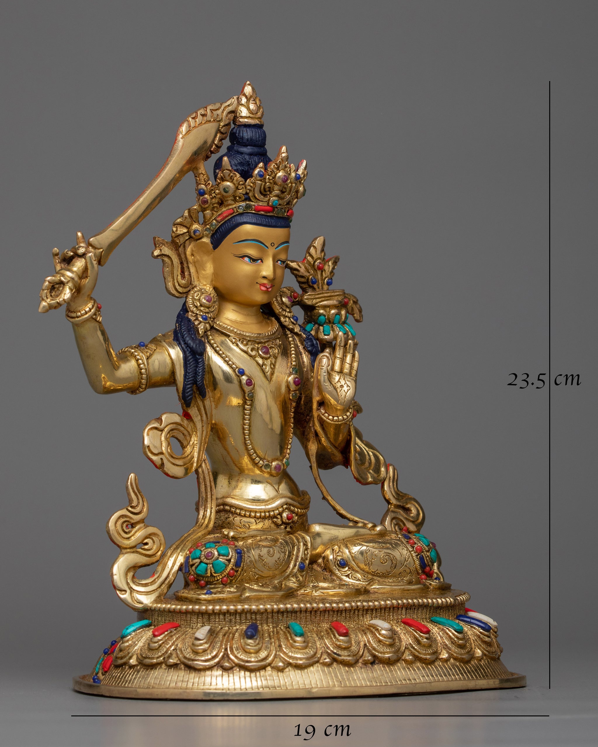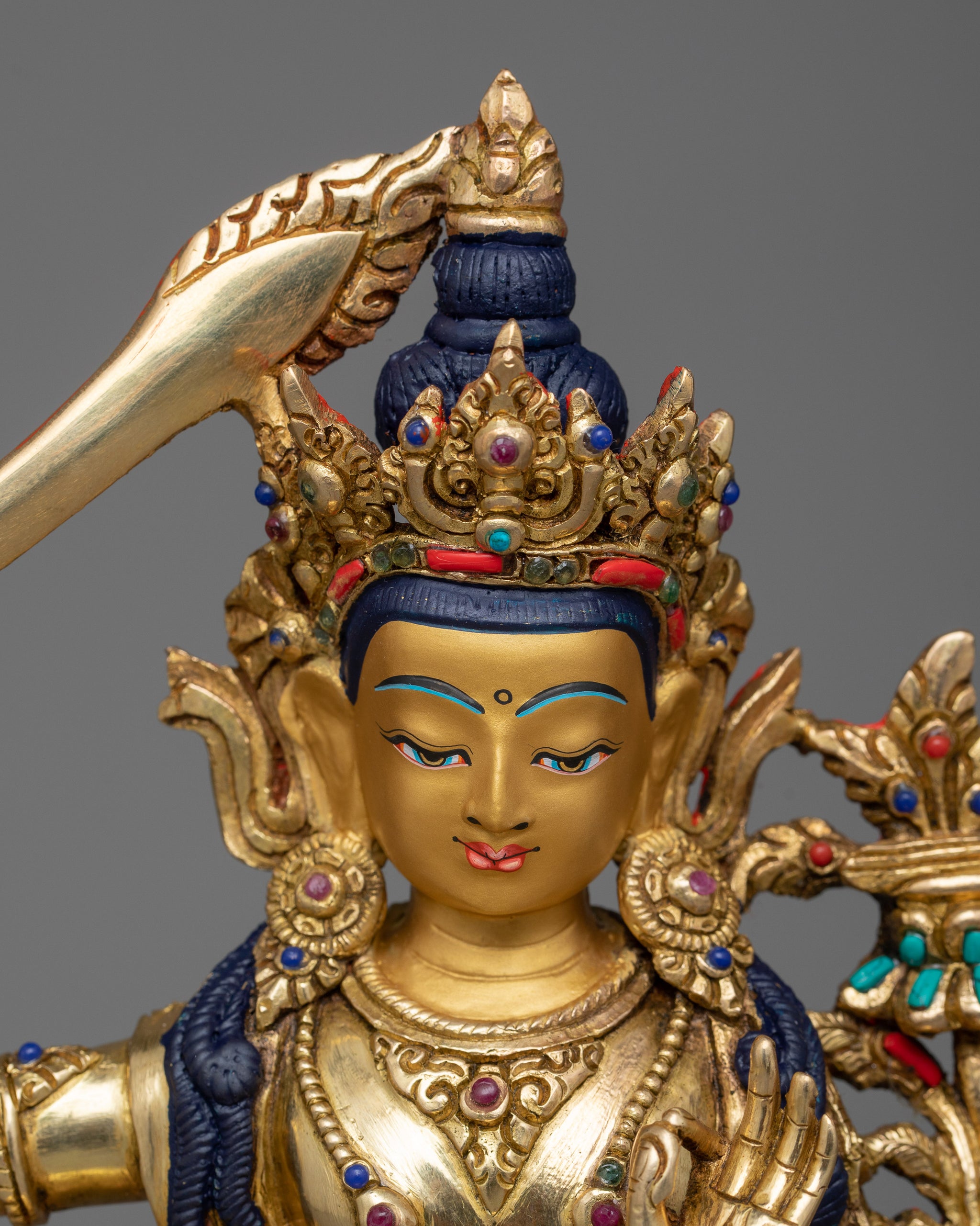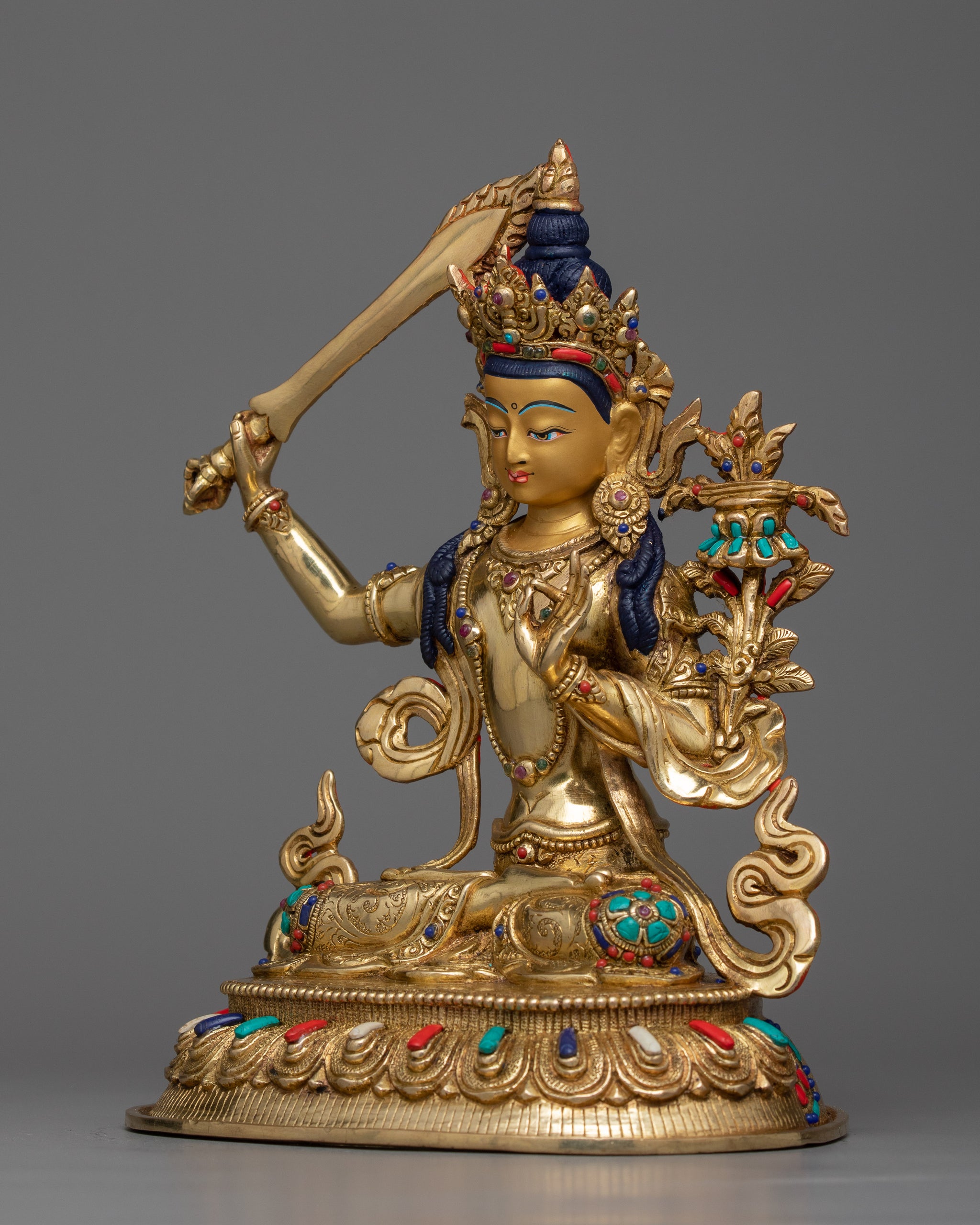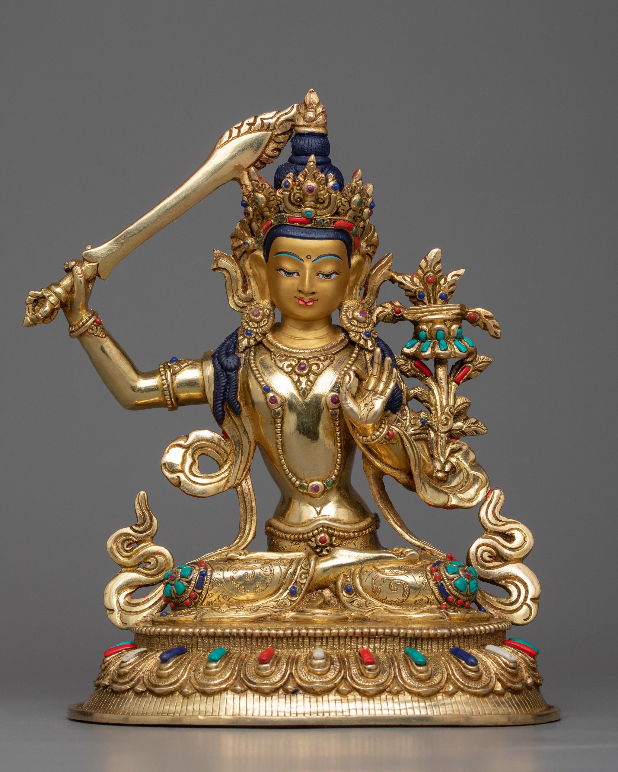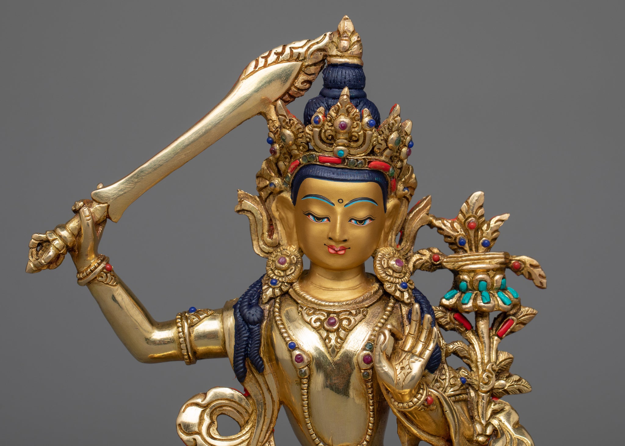 Wisdom Bodhisattva Manjushri 24K Gold Gilded Sculpture | Illumination of Insight