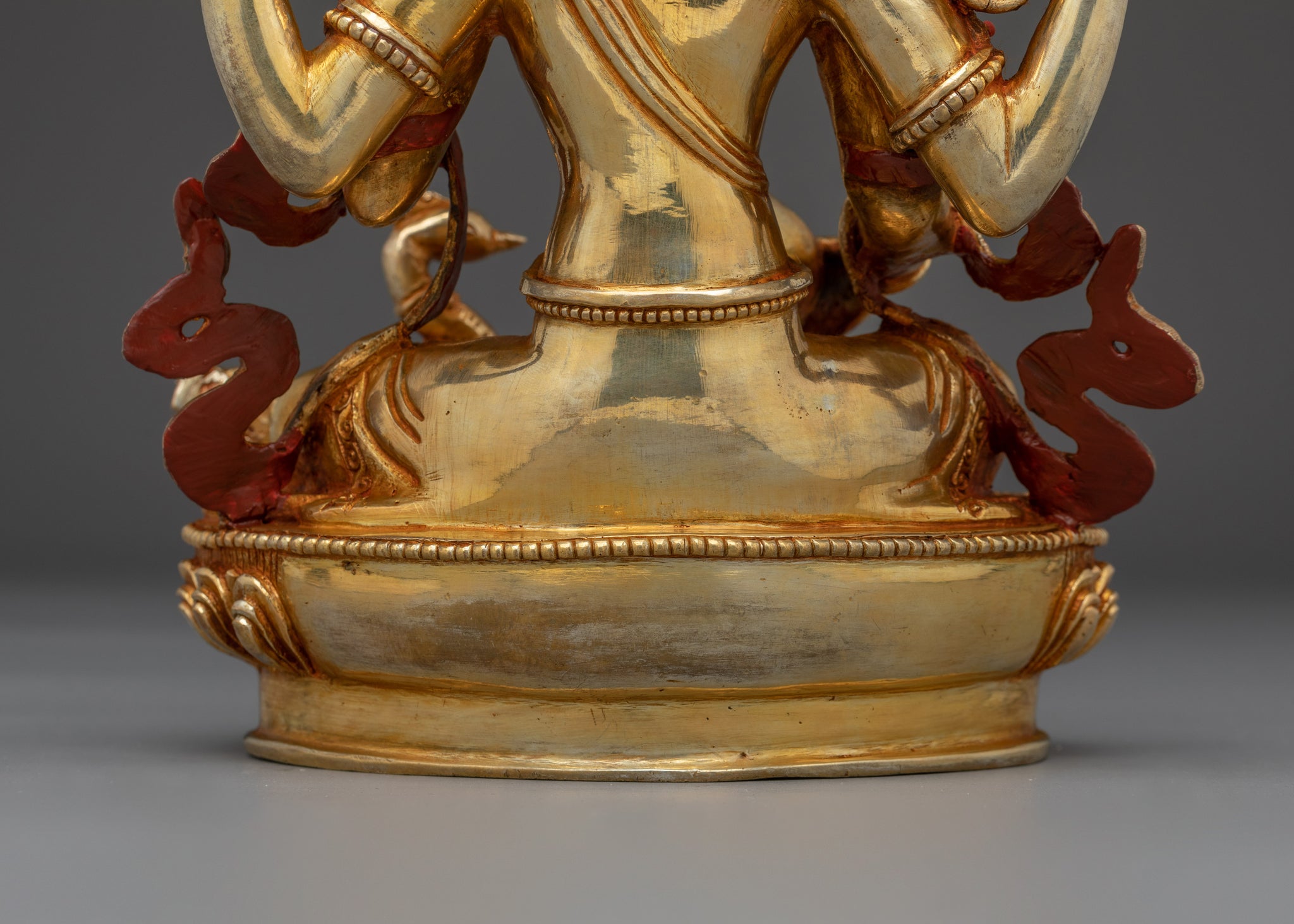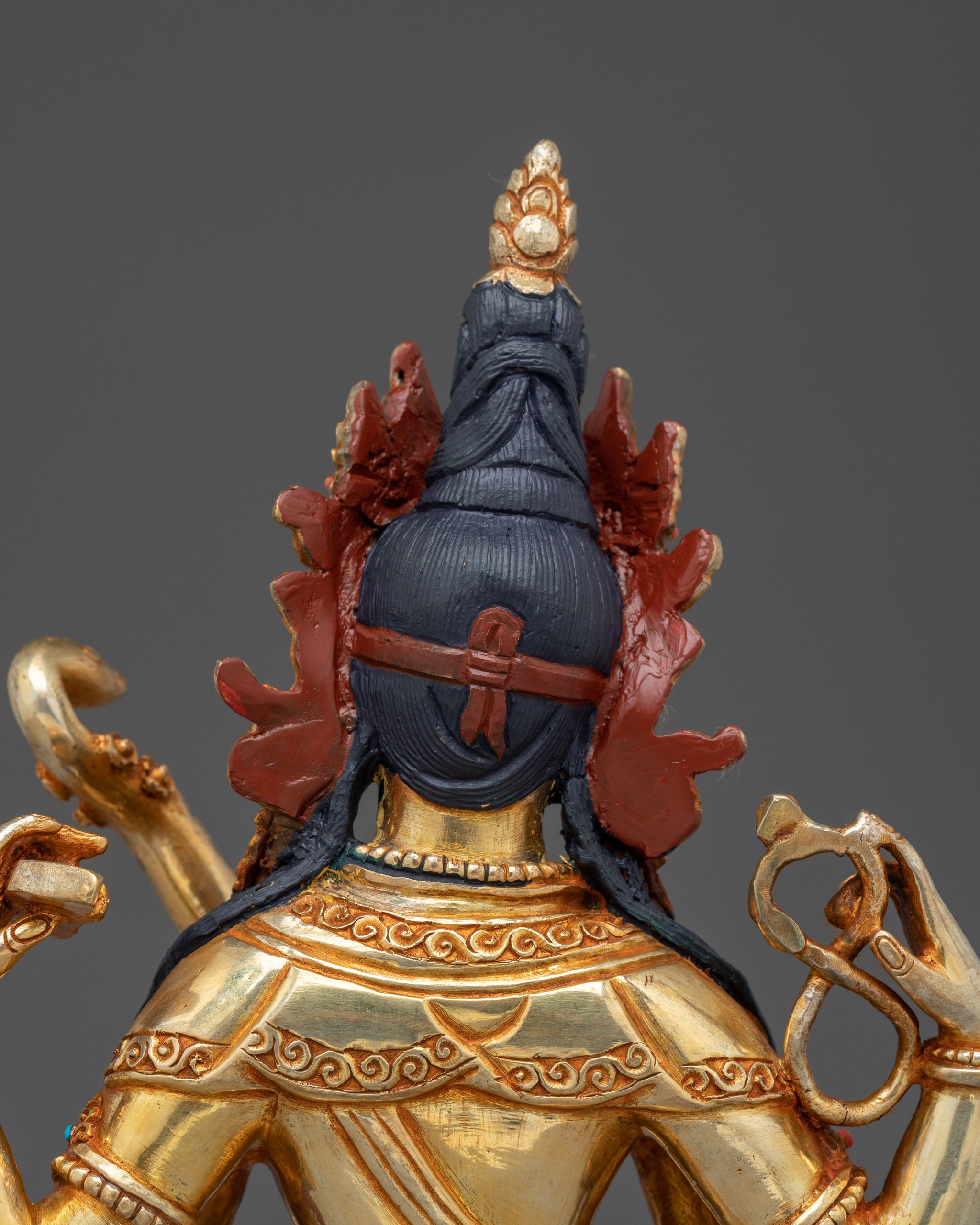 Vajrayogini is stunning. The details are amazing. It's easy to make out her facial expressions, skulls, feet, and the ring of fire around her. You can tell she's handmade. There is a consecration hole in her back.