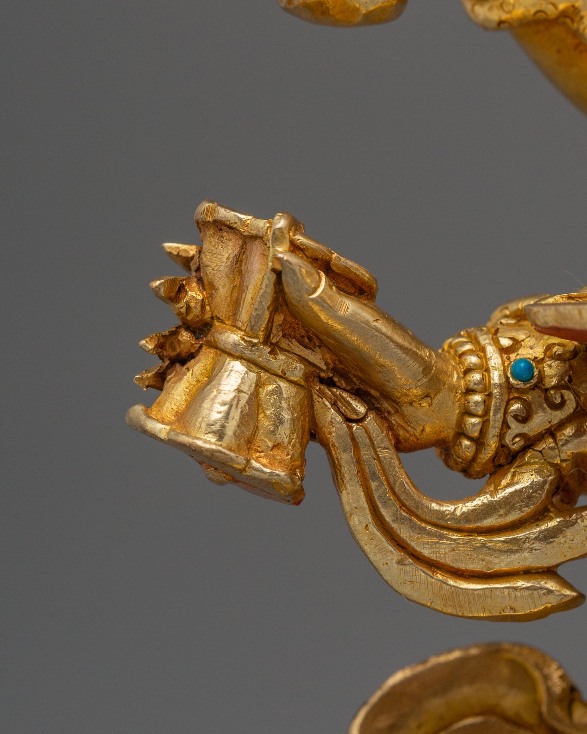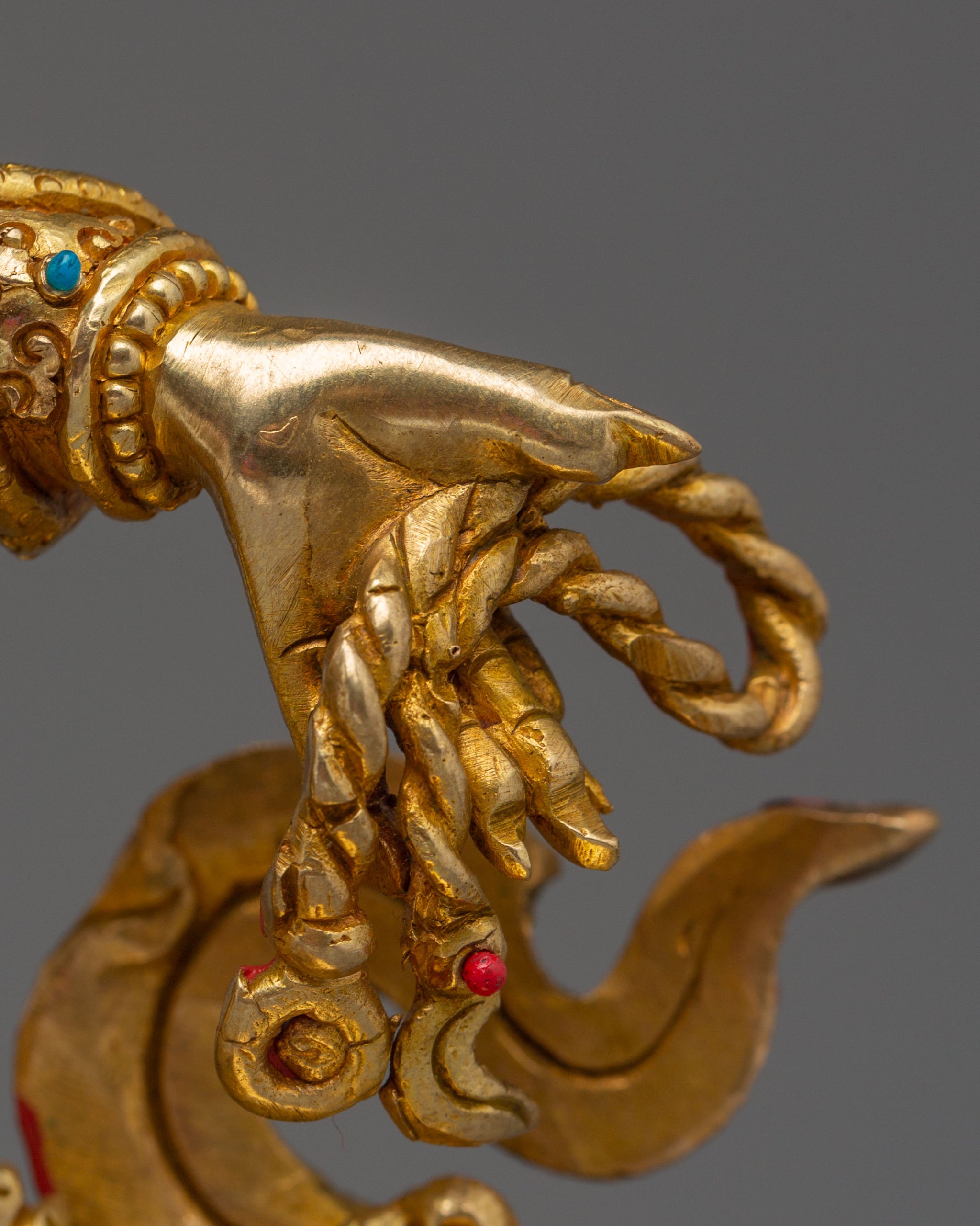 Vajrayogini is stunning. The details are amazing. It's easy to make out her facial expressions, skulls, feet, and the ring of fire around her. You can tell she's handmade. There is a consecration hole in her back.