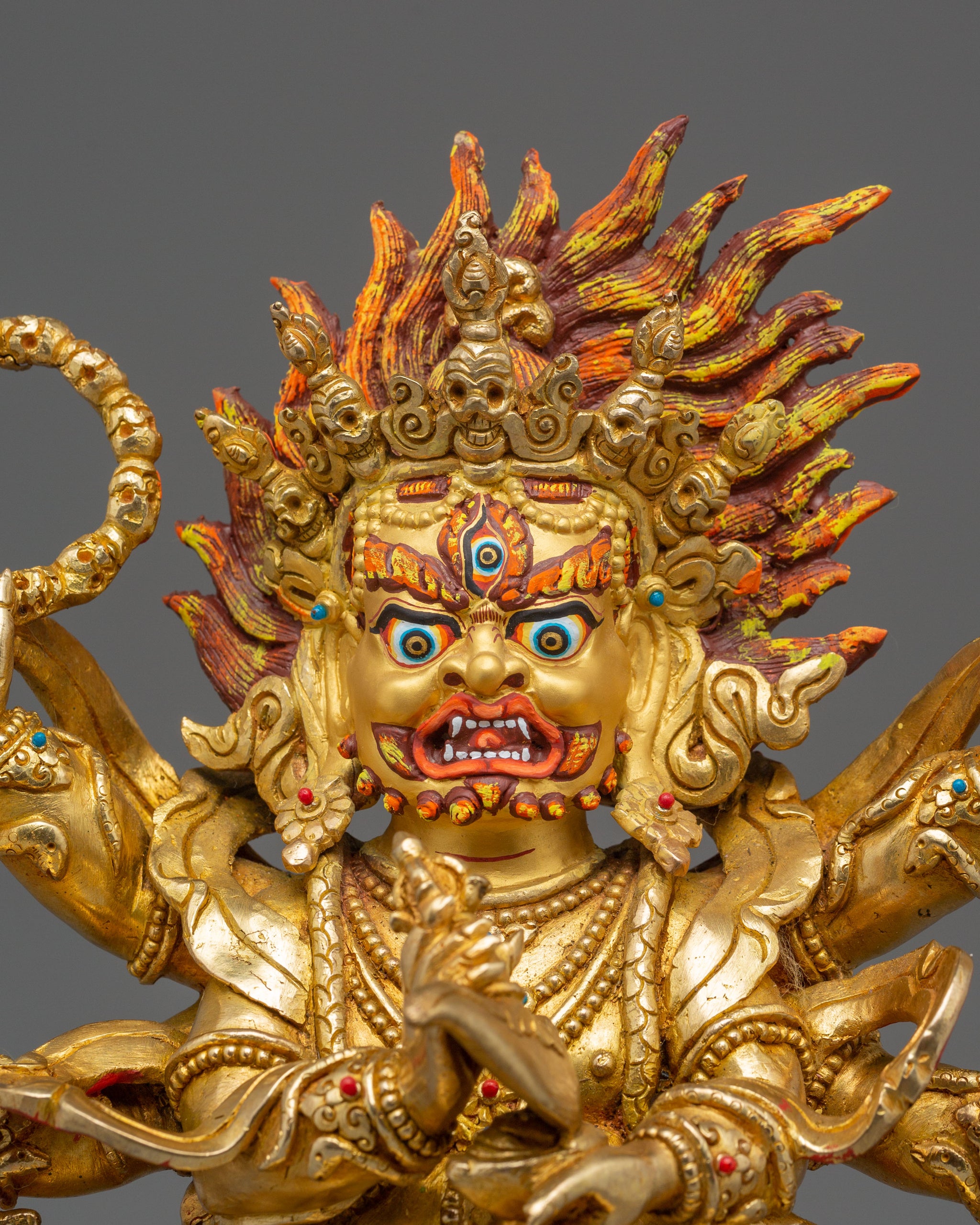 Wrathful Deity Six-Armed Mahakala Statue | Traditional Himalayan Sculpture