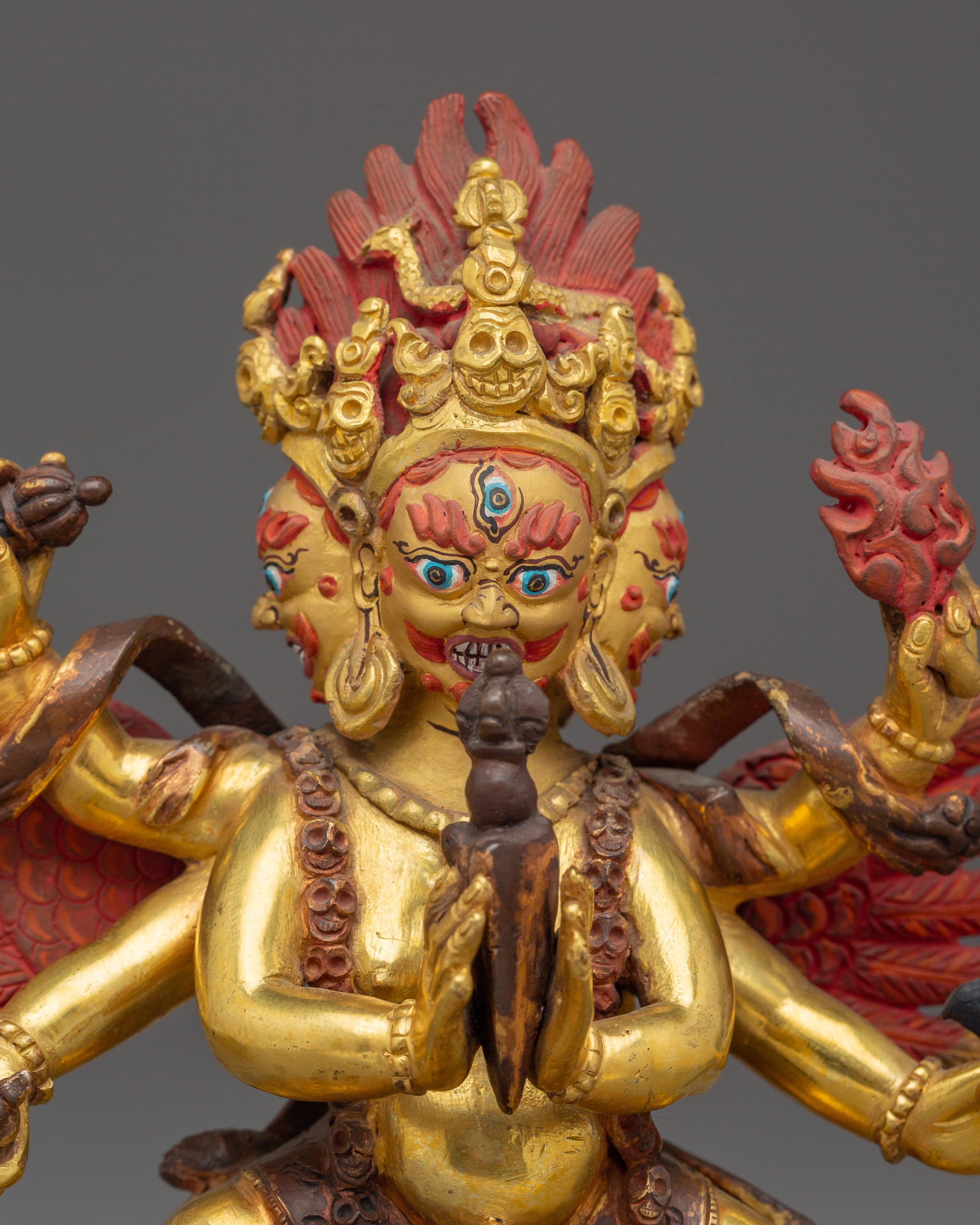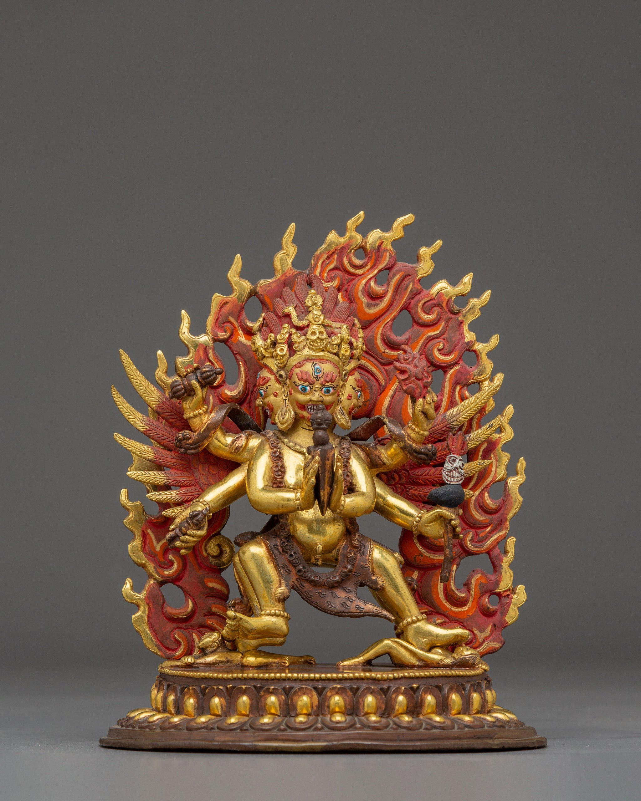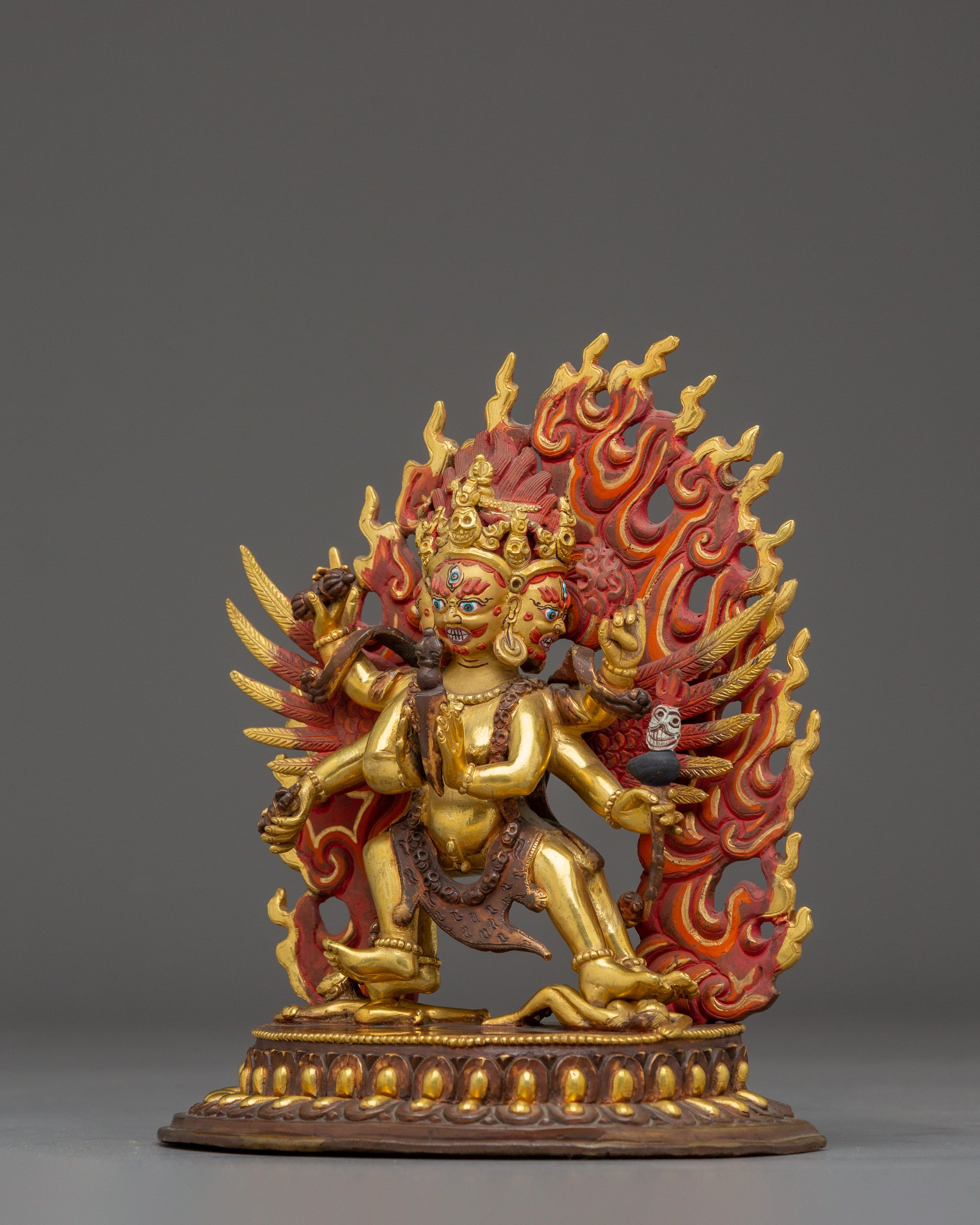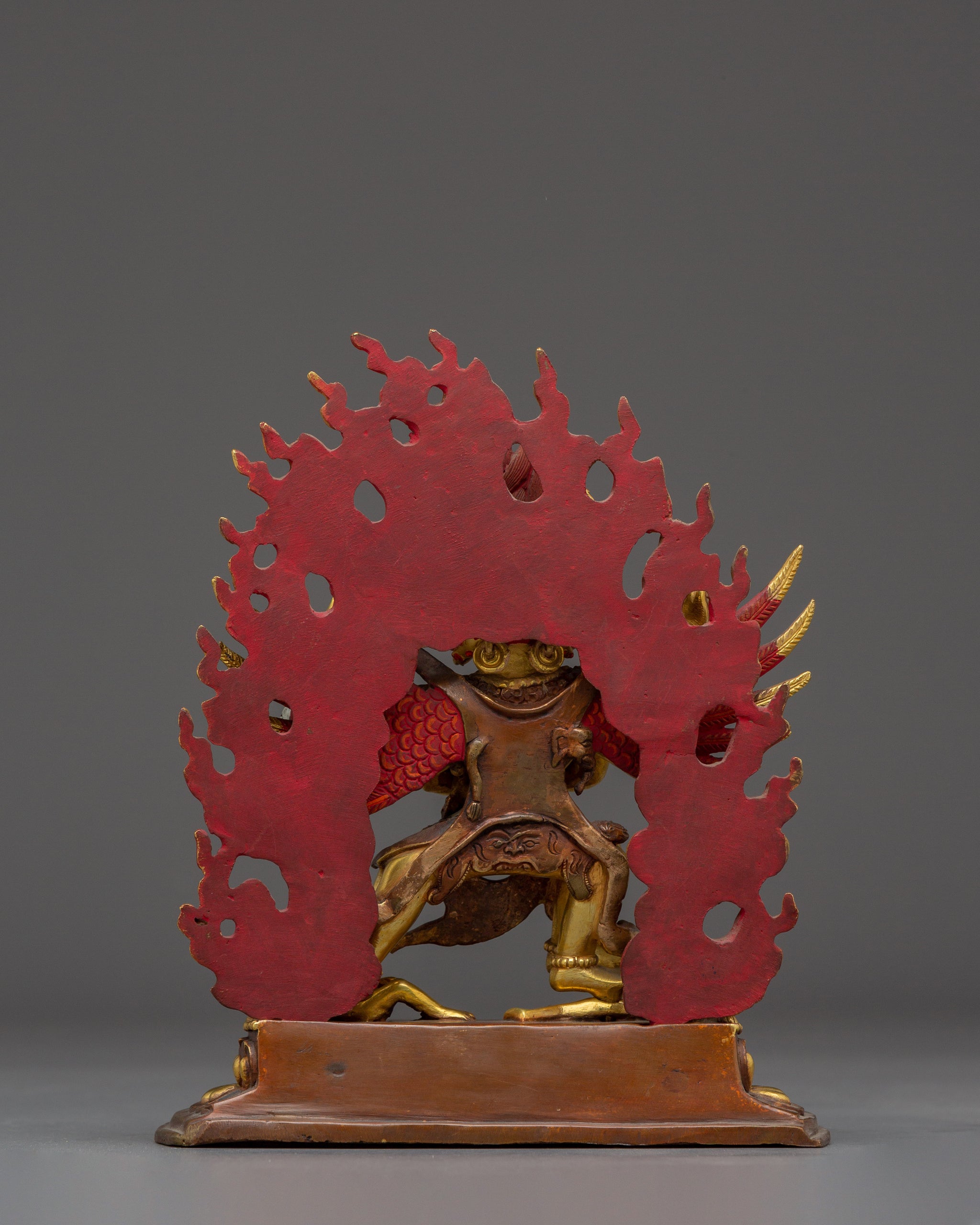Vajrayogini is stunning. The details are amazing. It's easy to make out her facial expressions, skulls, feet, and the ring of fire around her. You can tell she's handmade. There is a consecration hole in her back.