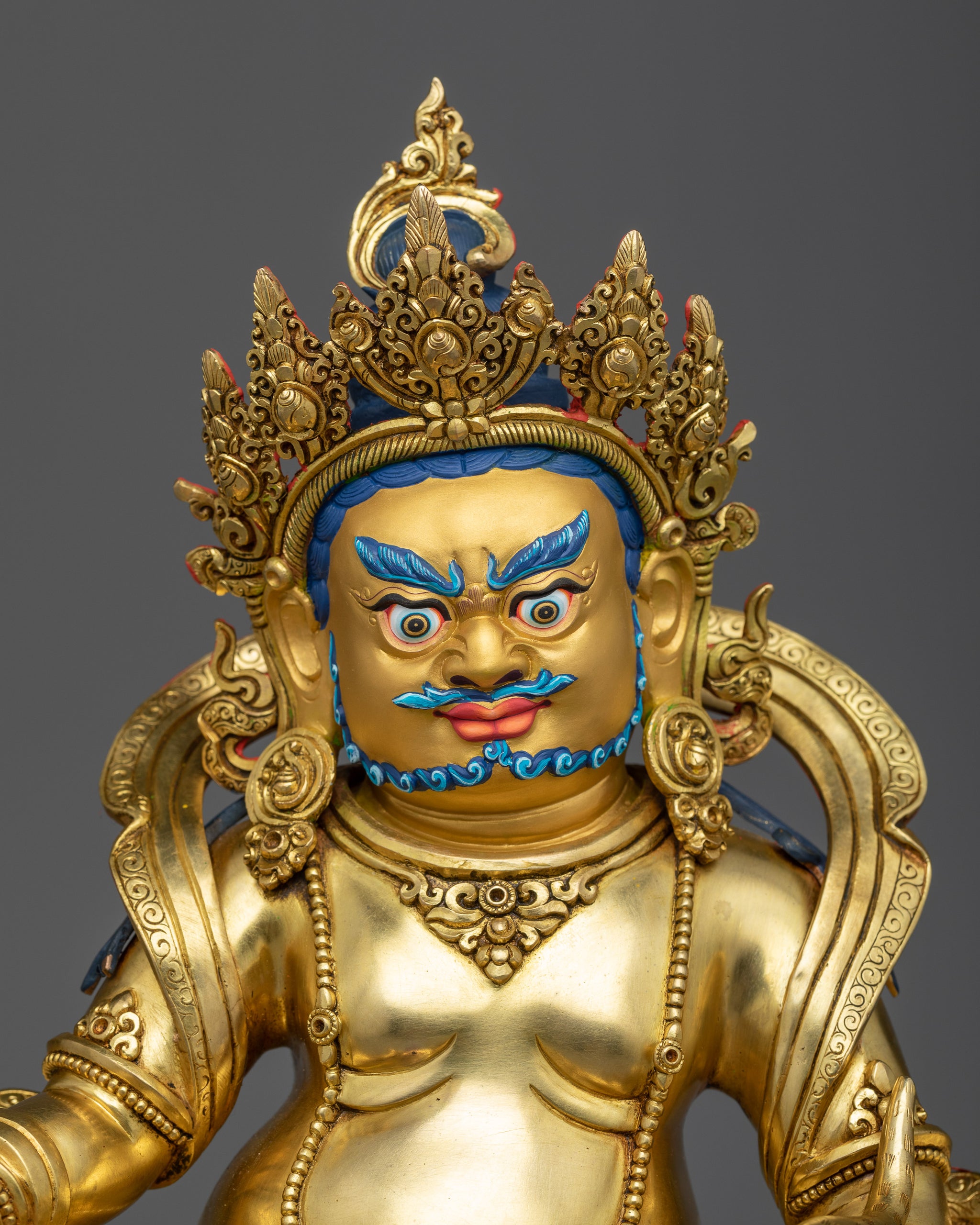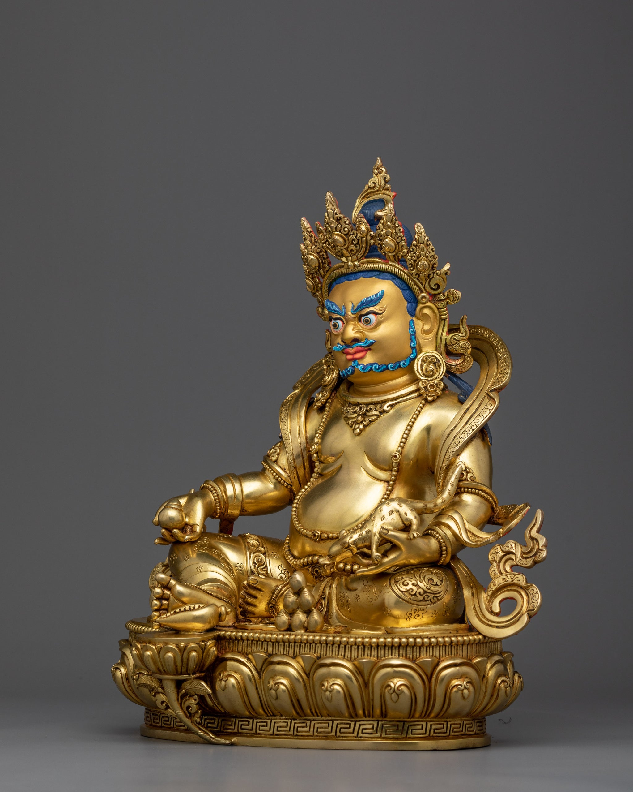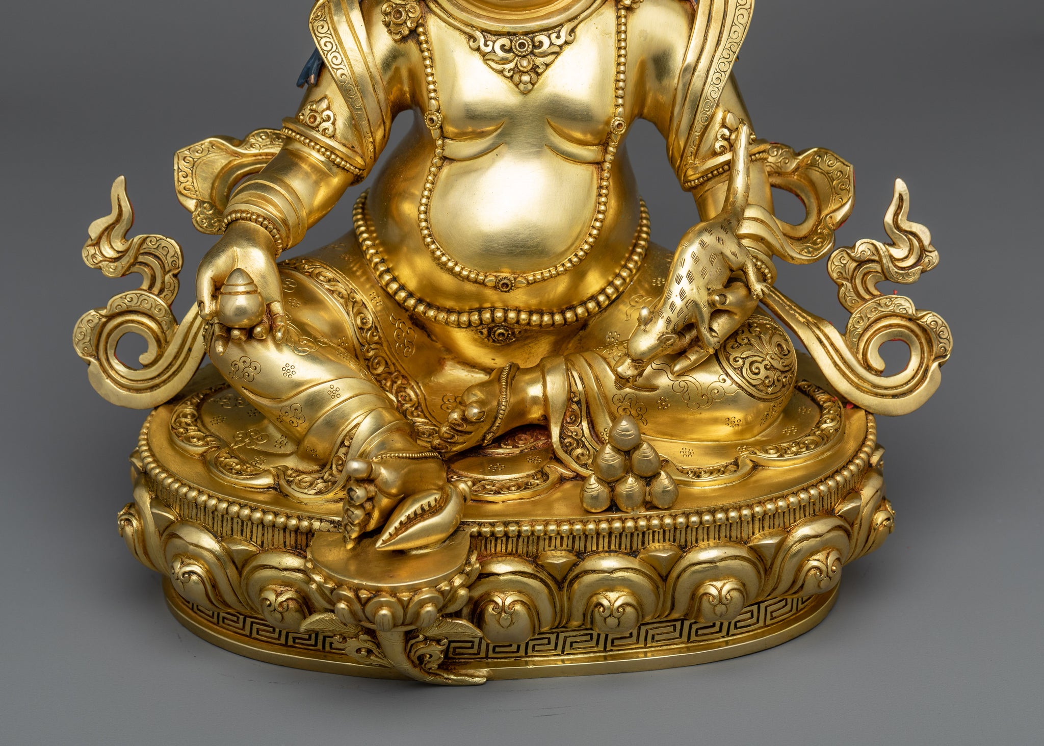 This piece's great weight adds to its sense of grandeur, symbolizing Dzambhala's unbounded kindness. This statue, whether as a shrine centerpiece or as an attractive piece of spiritual home decor, serves as a continual reminder of Dzambhala's kind nature and the possibility of abundance in our own lives.